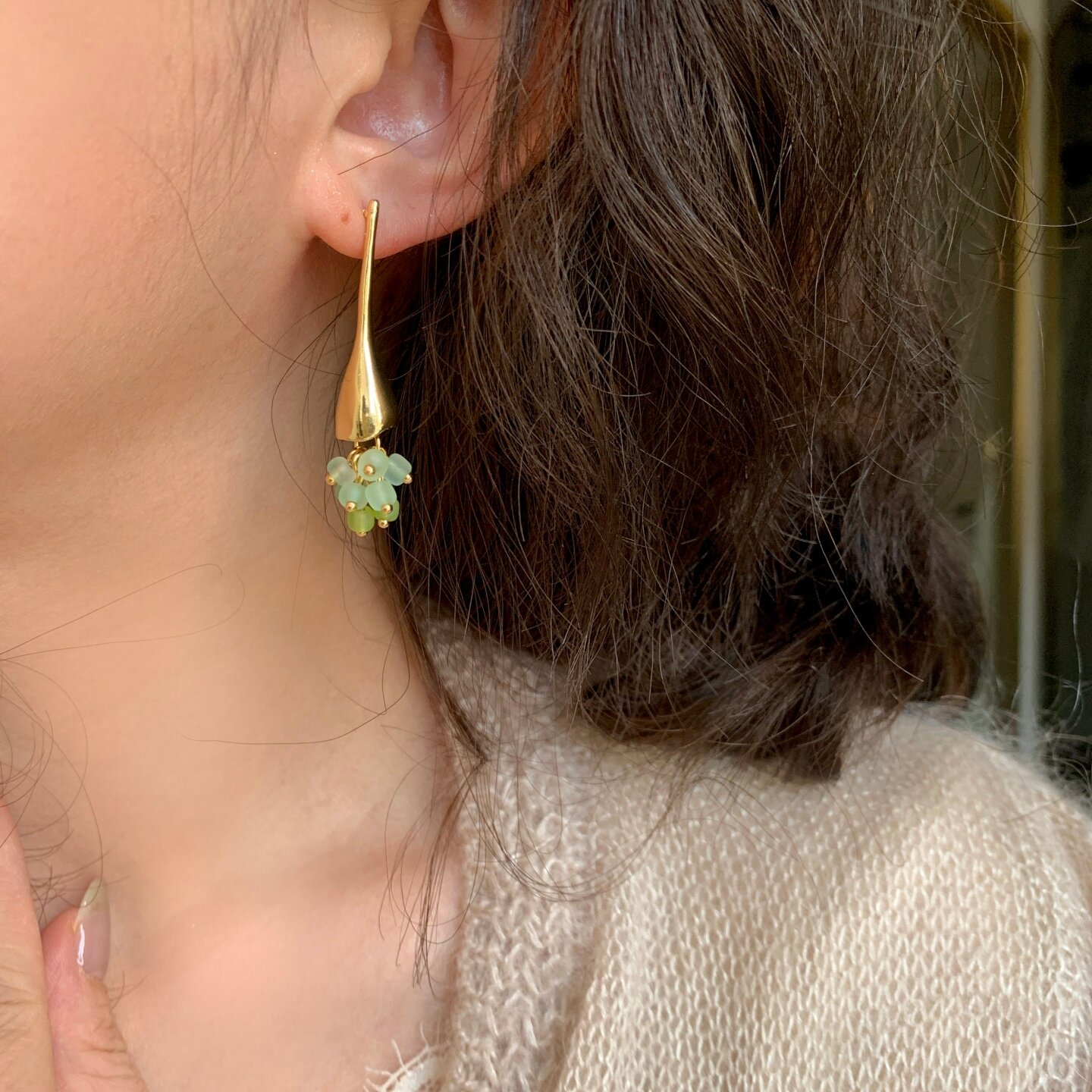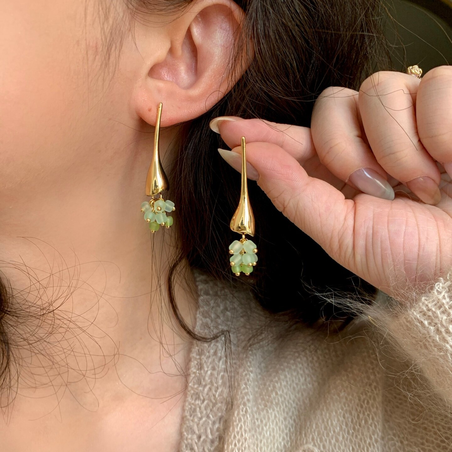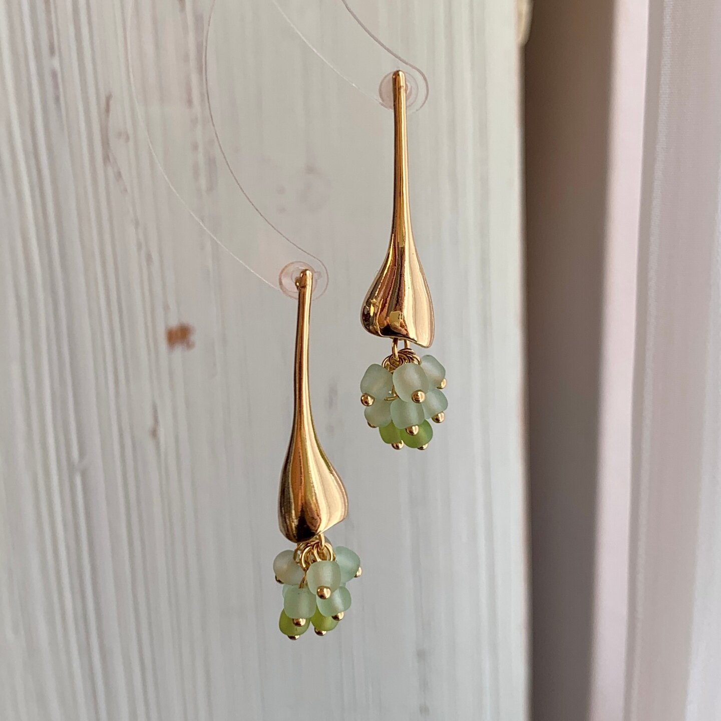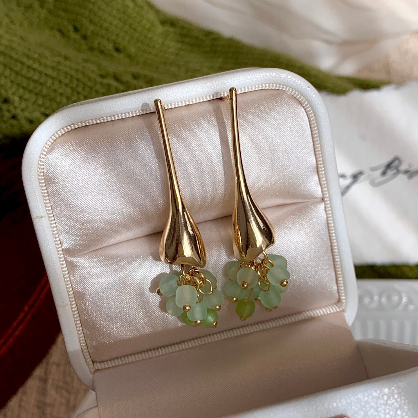 《花盏》原创春夏森系绿色长款流苏精致小众独特水滴耳饰耳钉耳环