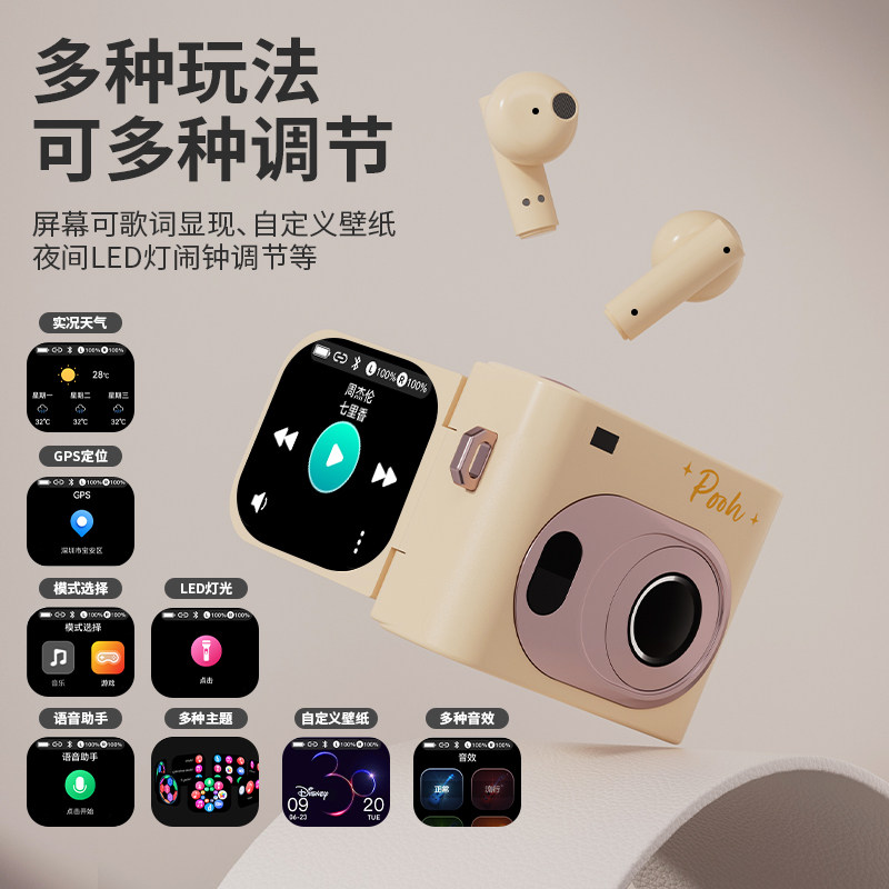 迪士尼无线蓝牙耳机半入耳式触屏显示歌词适用苹果华为女生日礼物