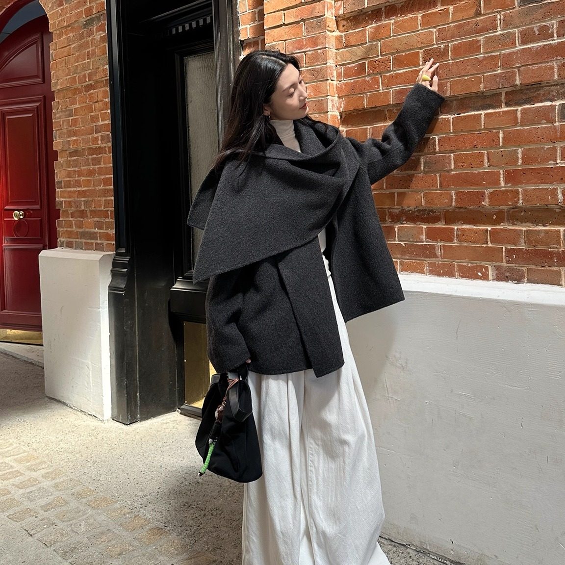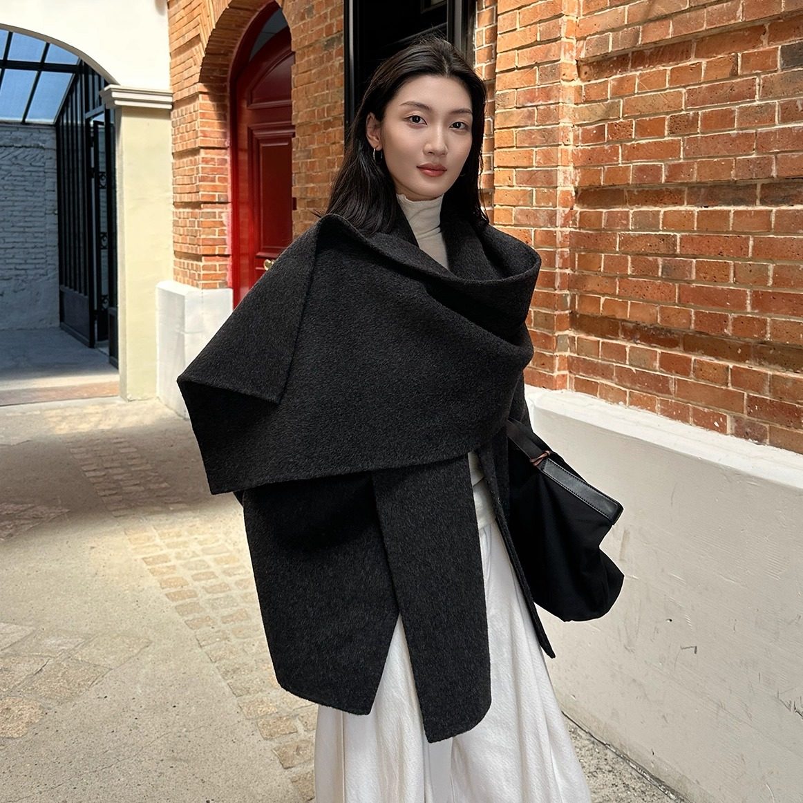 江南双面呢斗篷羊绒大衣女中长款秋冬独特超好看围巾披肩羊毛外套