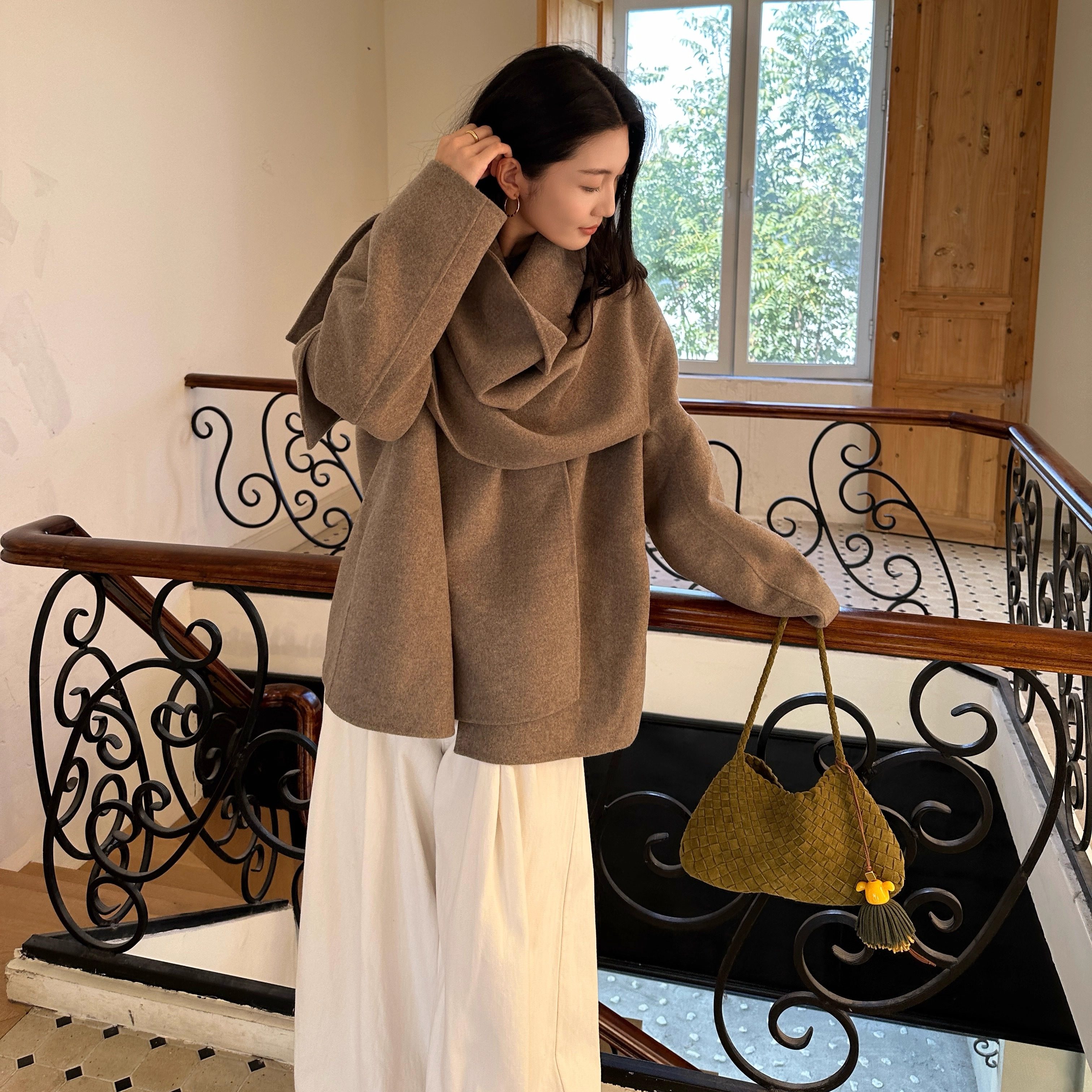 BXV斗篷双面羊绒大衣女披风2025春秋季小个子澳毛英伦羊毛呢外套