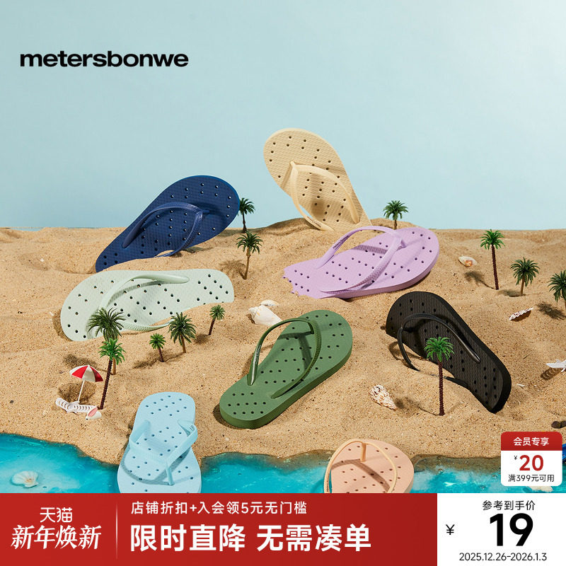 美特斯邦威人字拖鞋女夏居家清凉沙滩情侣款透气软底纯色速干拖鞋