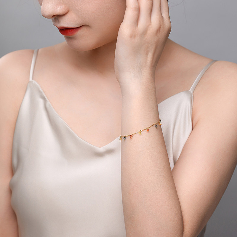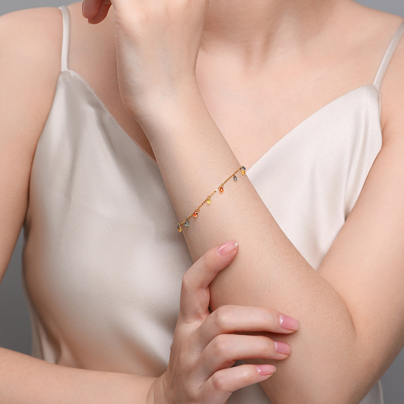 彩色蓝宝石手链满天星手饰时尚18k金手链