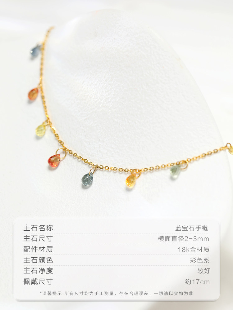 可卿珠宝 琳露 彩色蓝宝石手链满天星手饰时尚18k金手链礼品女正