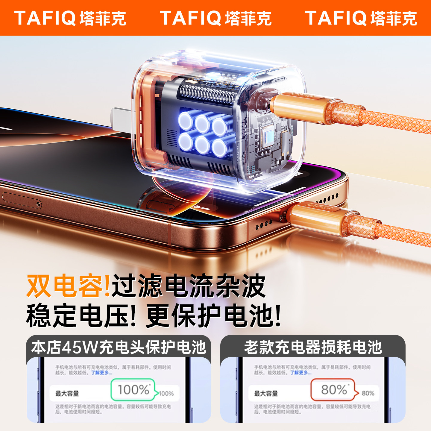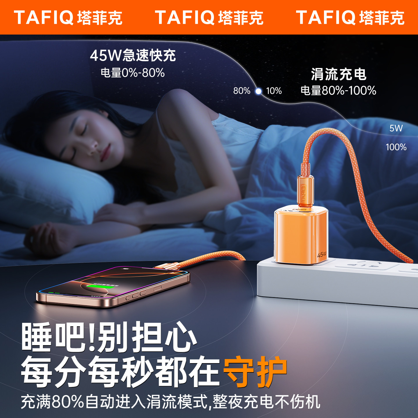 【新年限定】塔菲克45W充电头适用苹果17ProMax充电器iPhone16手机15pro快充套装PD原装新机双typec编织线