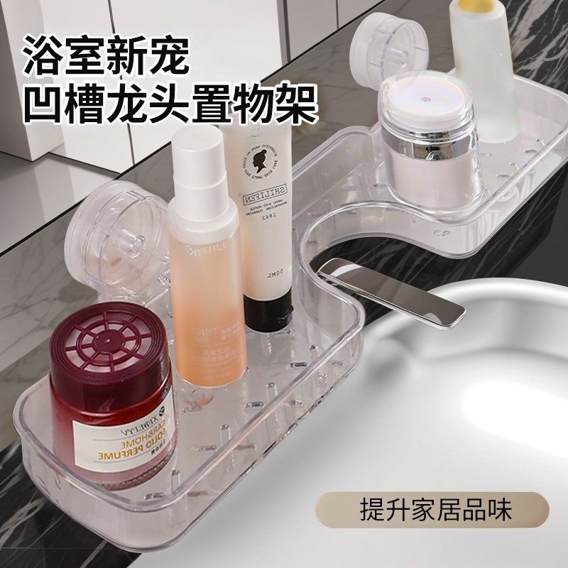吸盘洗漱台置物架免打孔水龙头置物架厕所洗手池镜前收纳架子壁挂