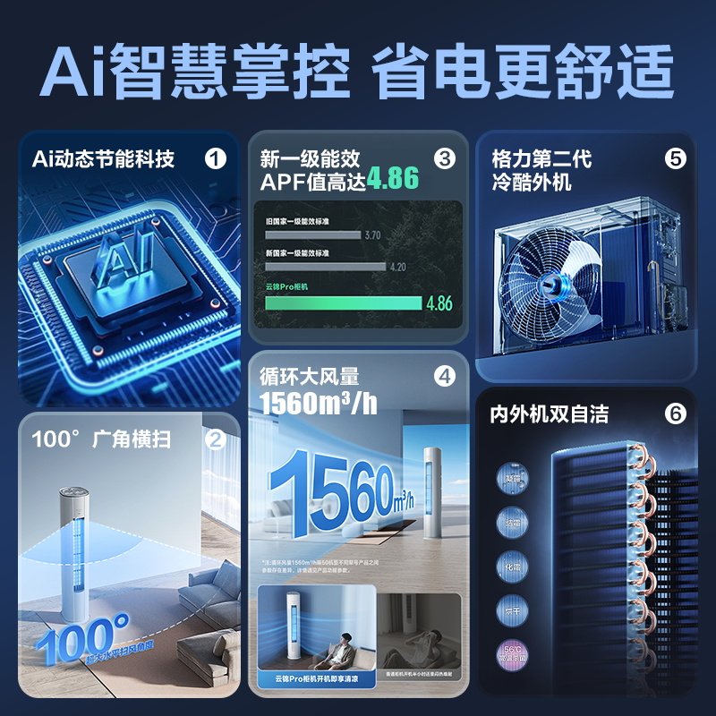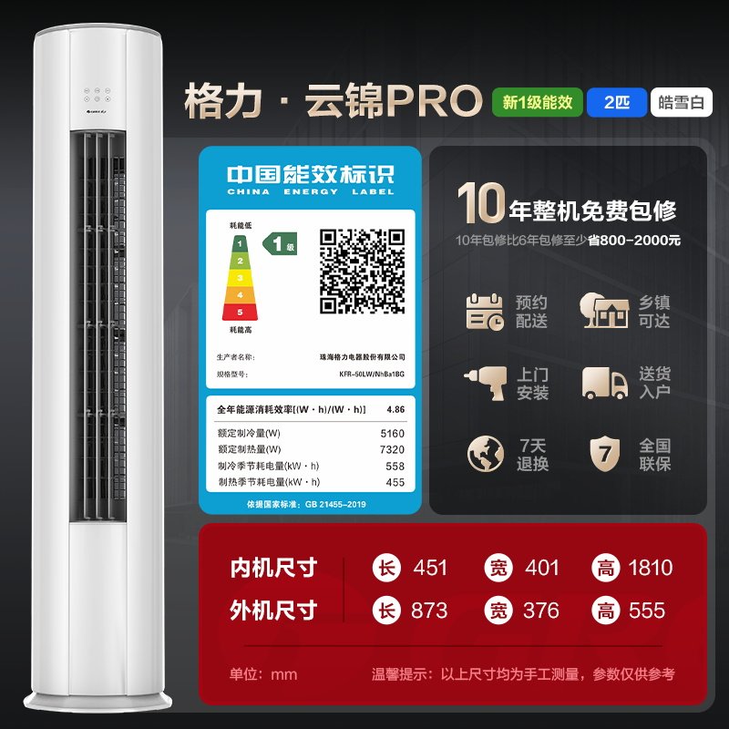 限时国补】格力空调官方家用立式柜机变频一级冷暖节能2匹云锦pro