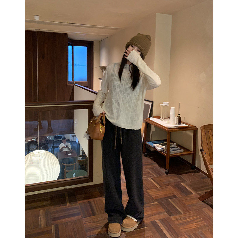 十月结晶孕妇糯米裤冬季外穿不勒肚阔腿松紧腰宽松厚运动裤小个子