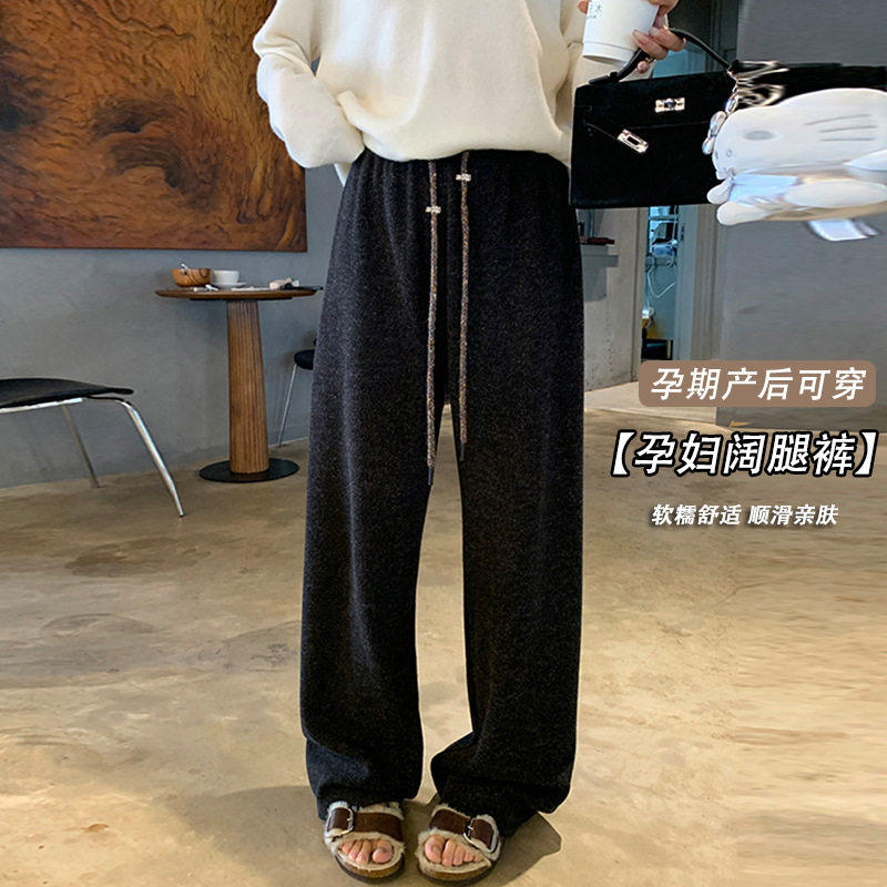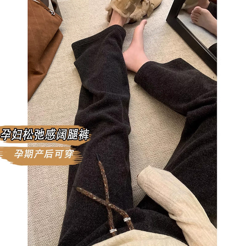 婧麒孕妇裤子秋冬2025新款外穿加绒厚糯米阔腿裤孕期不勒肚子长裤
