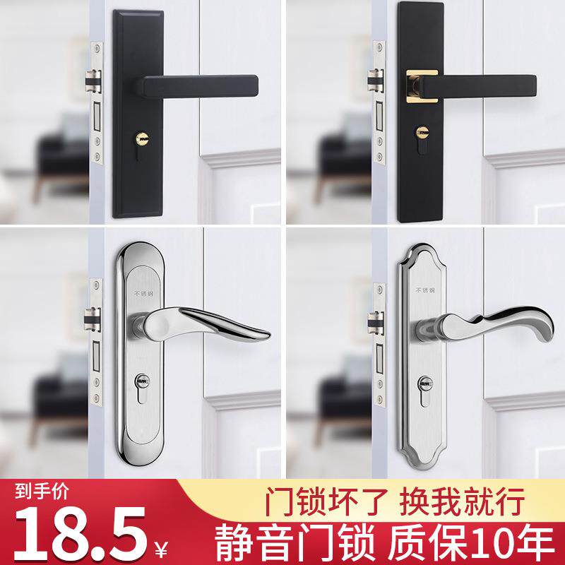 门锁家用通用型卧室内房间锁木门把手柄锁具卫生间免打孔老式换锁