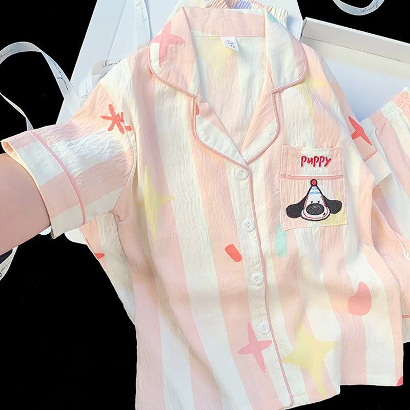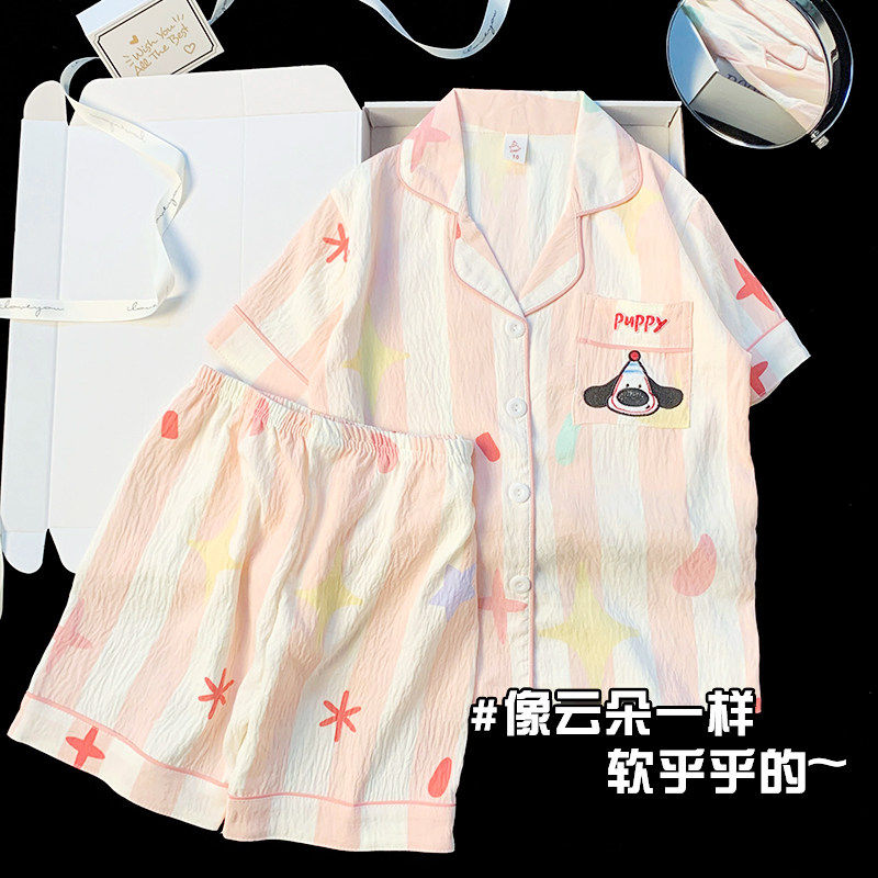 红豆儿童家居服女童短袖云朵棉睡衣薄款夏季中大童公主亲子装家居