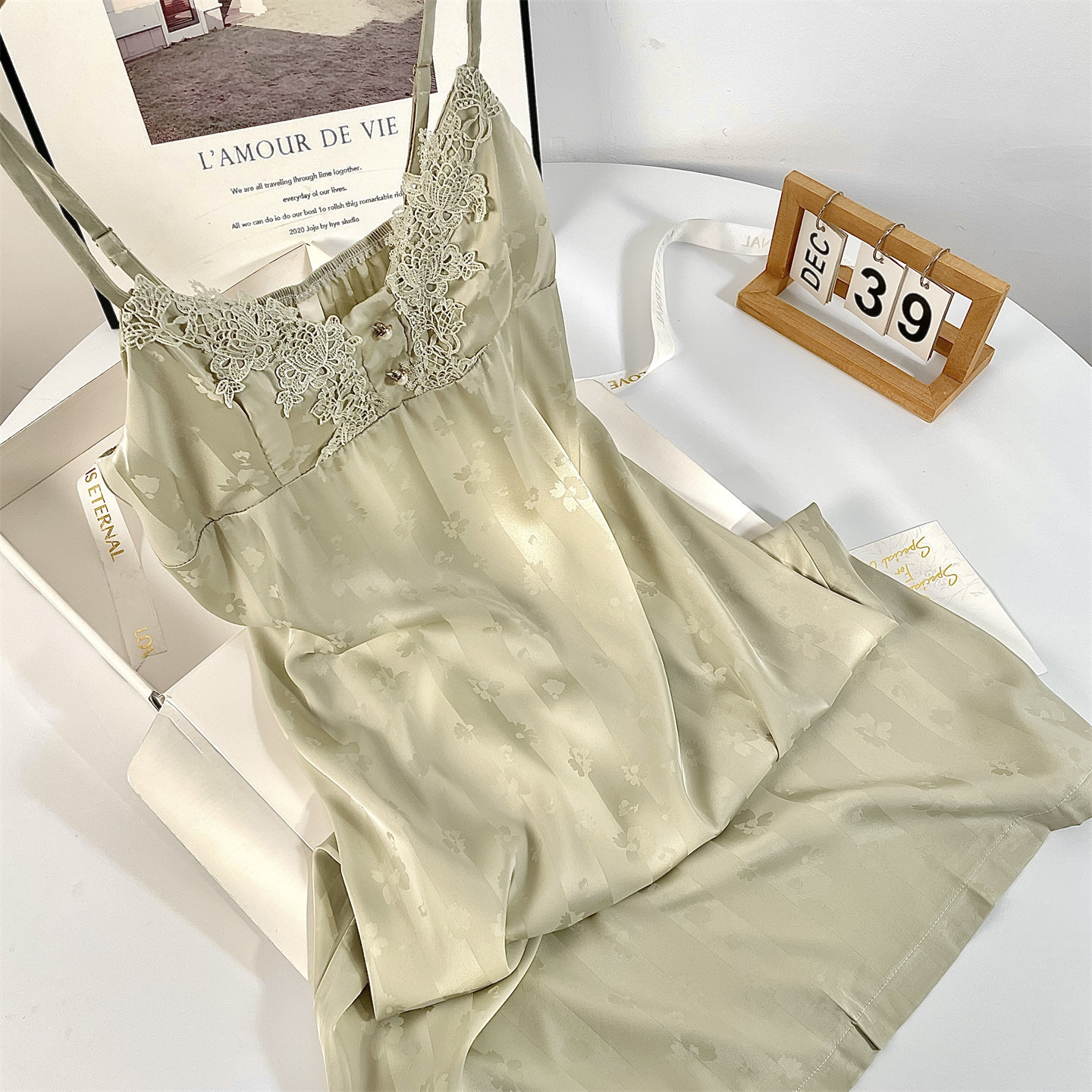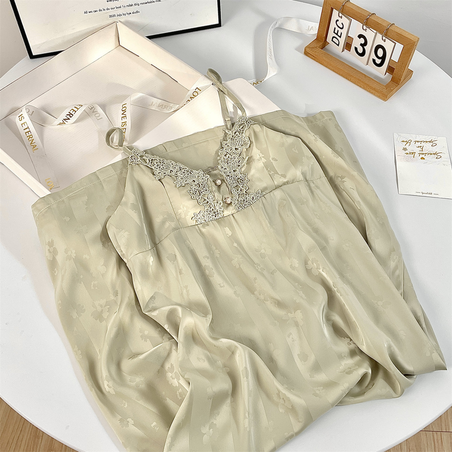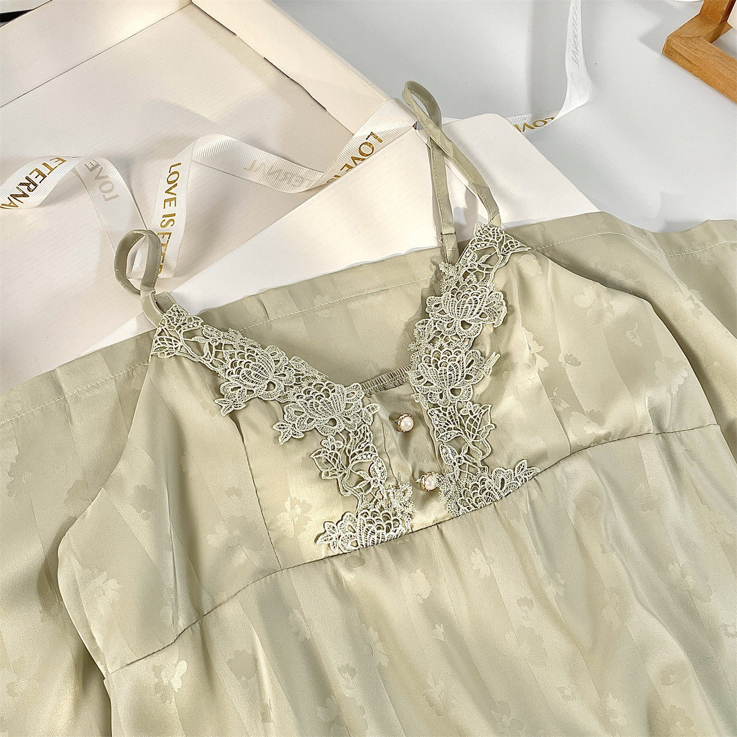 都市丽人睡裙蕾丝凉感睡衣女纯欲性感风冰丝吊带夏季带胸垫礼盒装