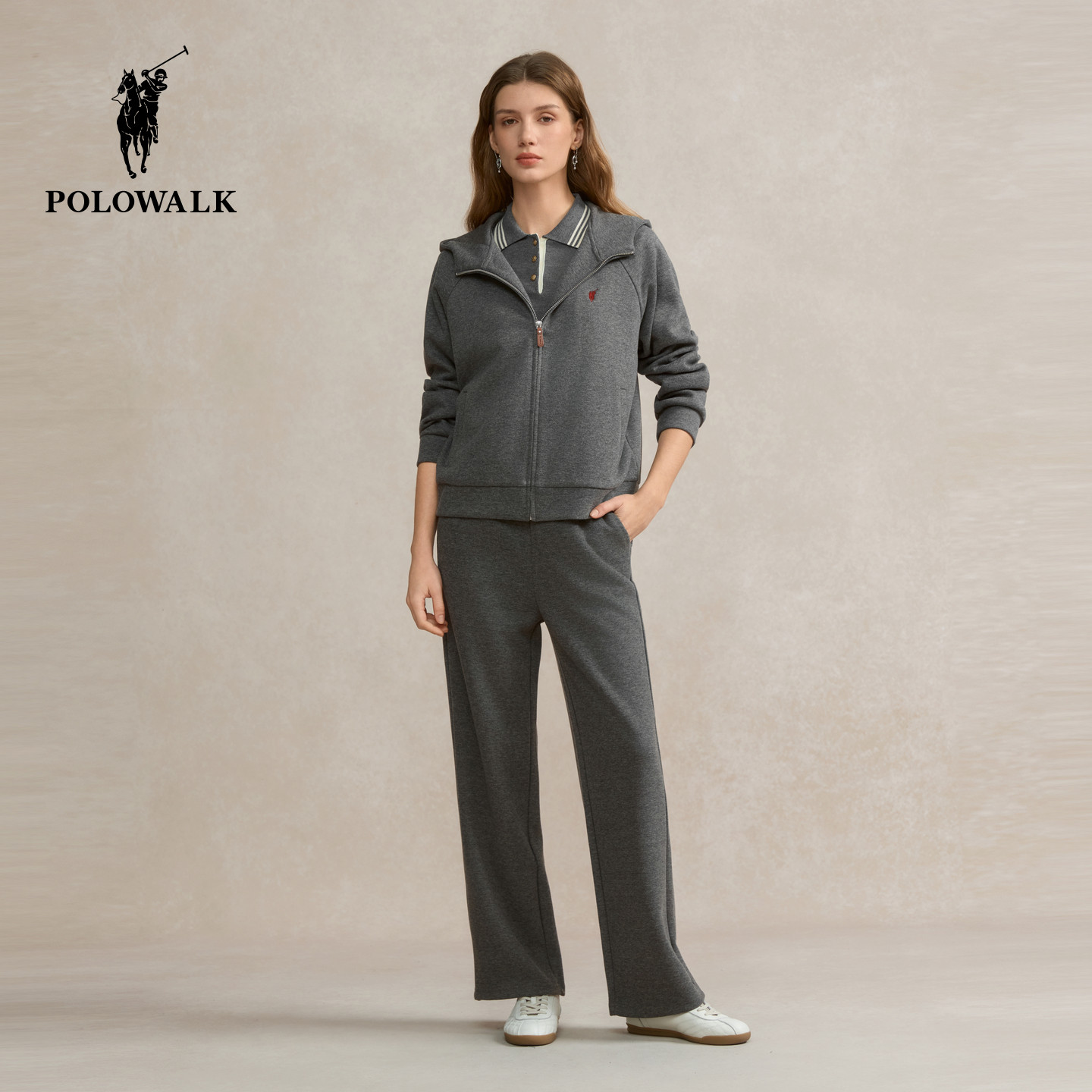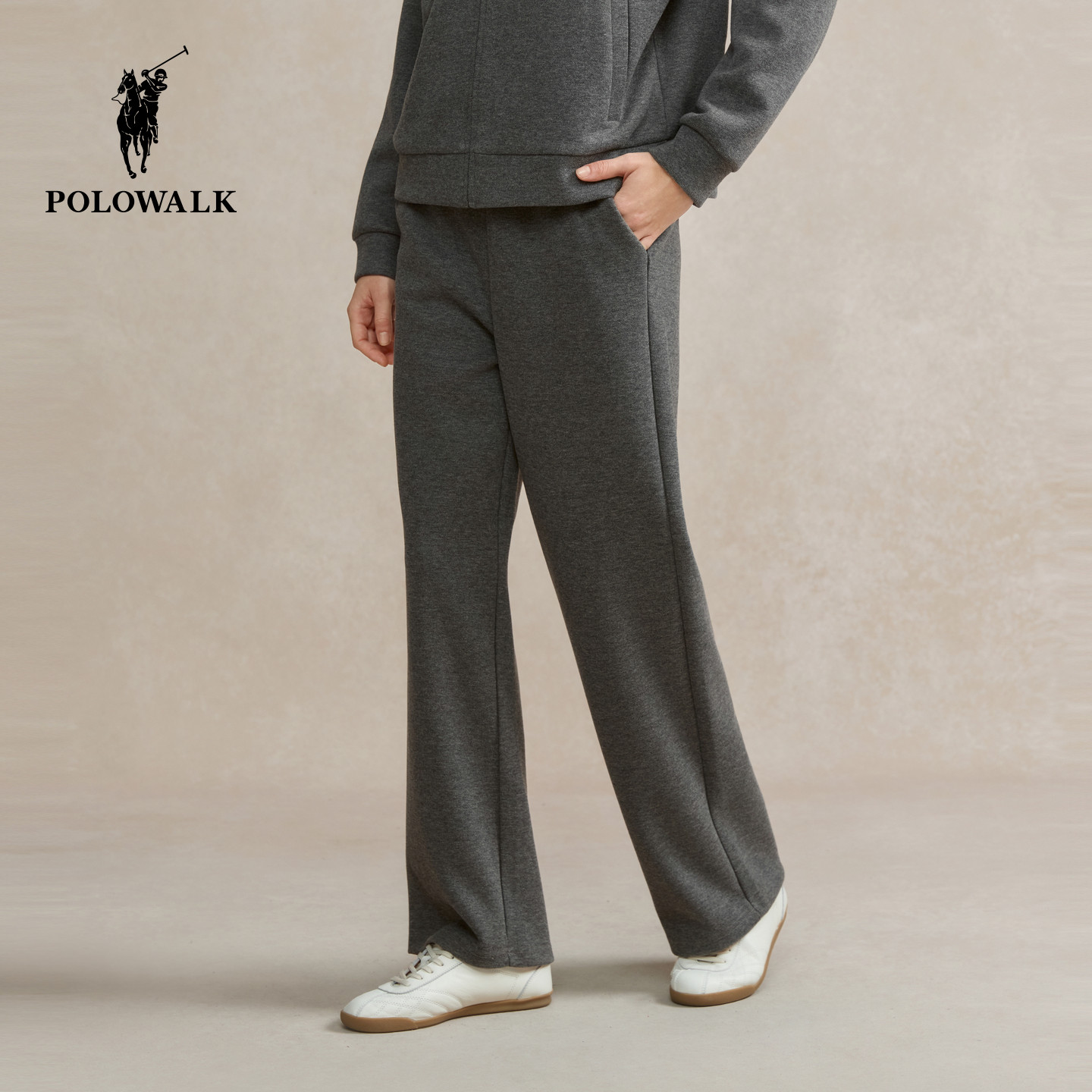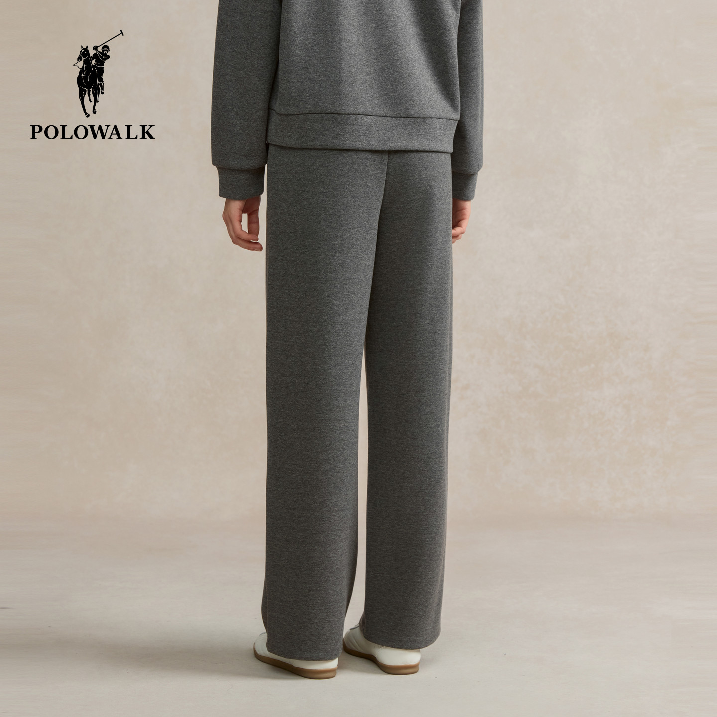 POLOWALK女式针织裤2025秋冬裤新品松紧腰直筒显瘦针织百搭阔腿裤