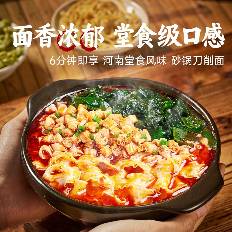 宛禾砂锅刀削面河南非油炸宽面速食方便面酸辣粉泡面