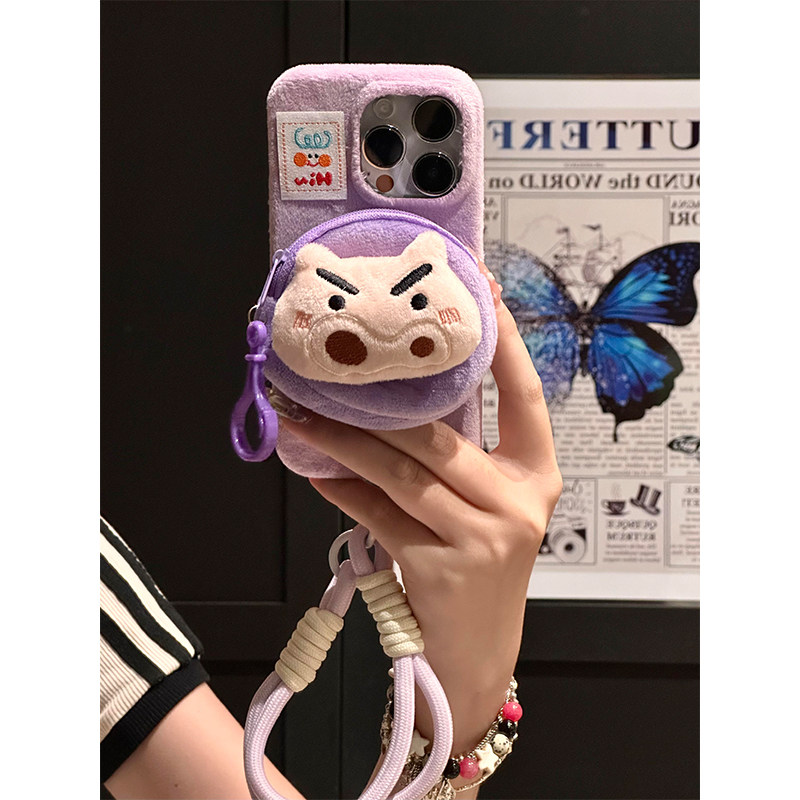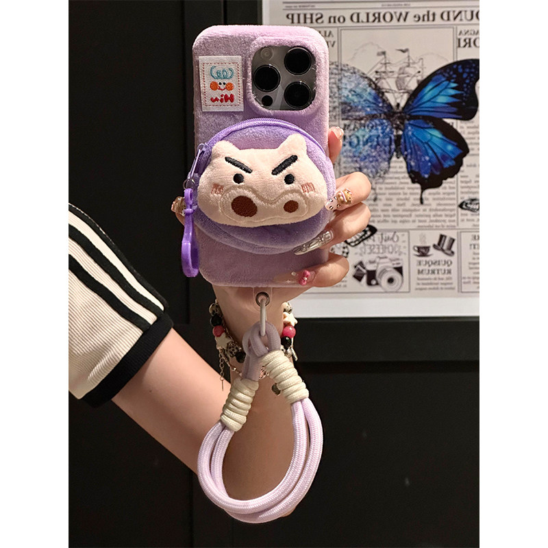 日韩ins呆萌可爱左卫门钱包适用苹果15promax手机壳毛绒iPhone14女新款13带挂绳12网红15Pro防摔16pro保护套