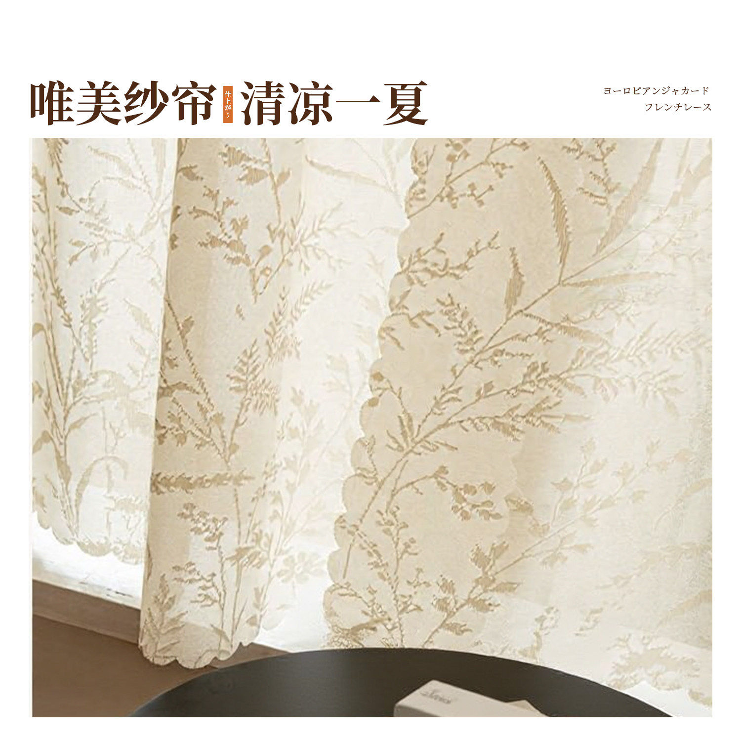 免打孔2026法式蕾丝窗帘卧室飘窗防晒魔术贴白纱帘透光不透人遮光