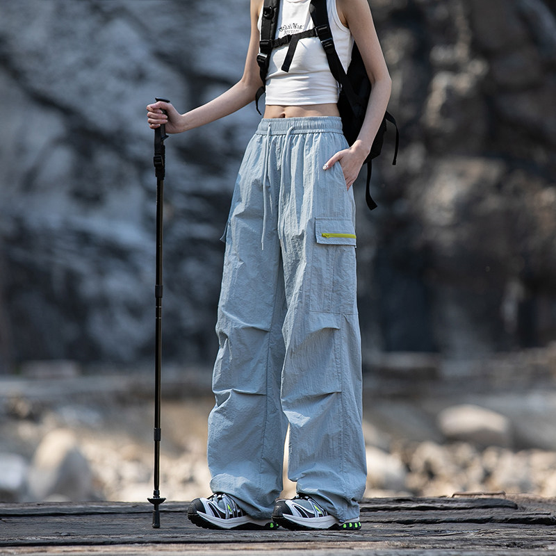 回力冰丝冲锋裤子男士夏季薄款防风防水宽松直筒伞兵工装休闲长裤