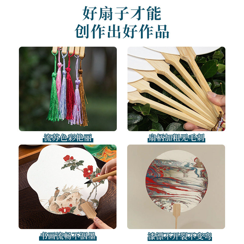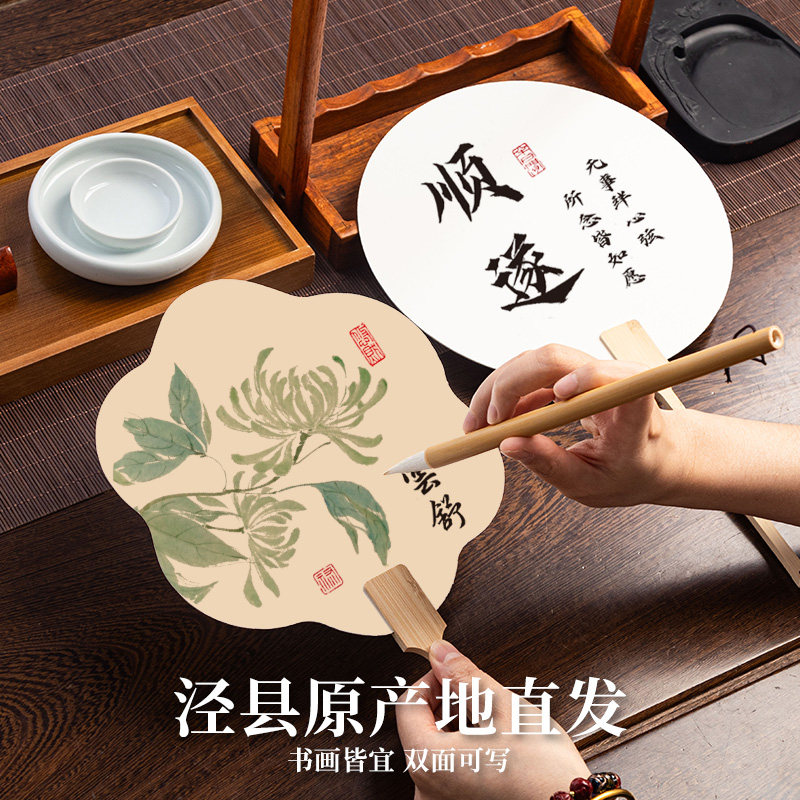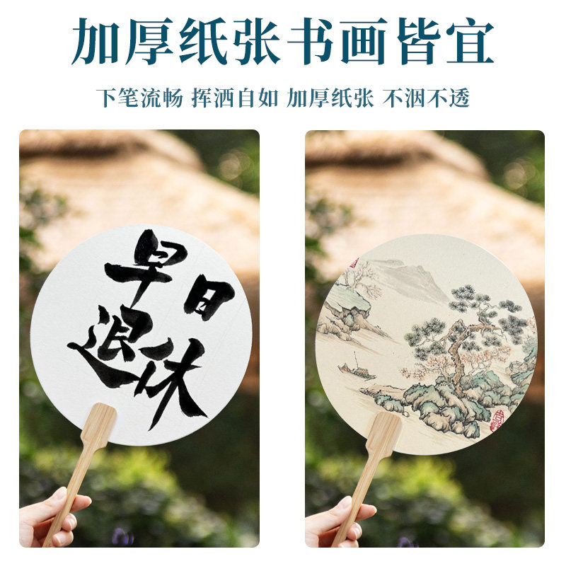熟宣工笔画专用宣纸团扇加厚卡纸扇面毛笔书法作品纸中国风古风扇子宫廷扇线描儿童美术专用底稿白描画稿纸扇