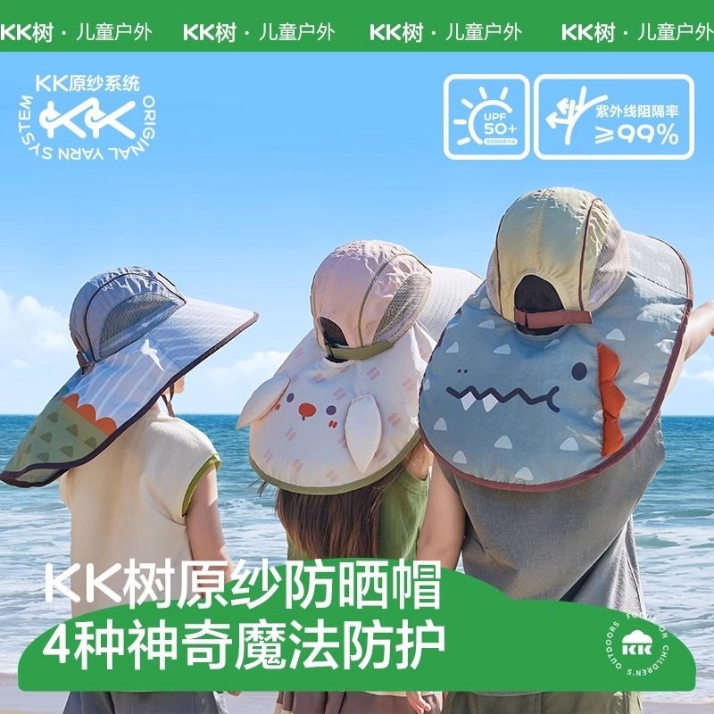 KK树原纱儿童防晒帽防紫外线男孩女童大帽檐遮阳帽宝宝太阳帽新款