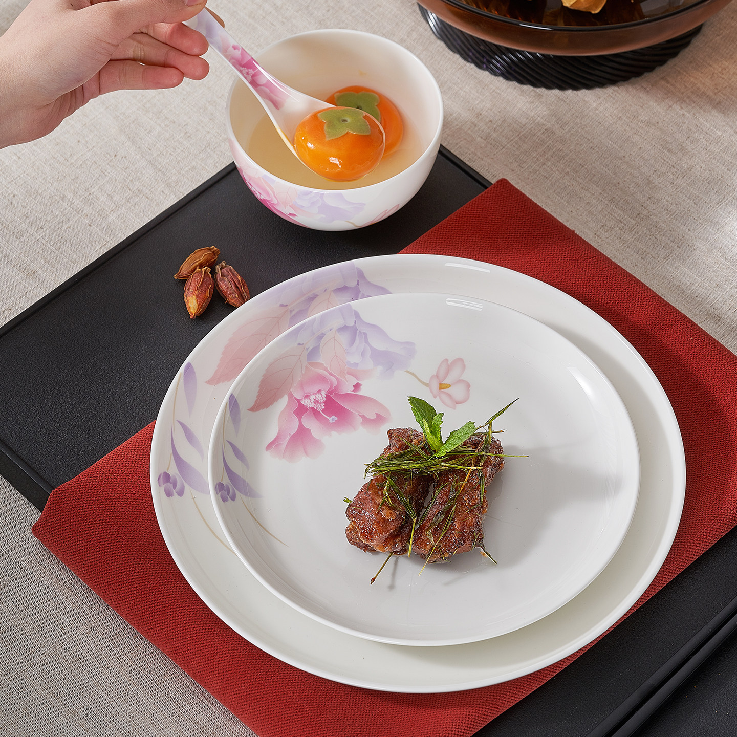 华光国瓷 骨瓷餐具单品 健康釉中彩家用中式 抗菌碗盘碟 花好月圆