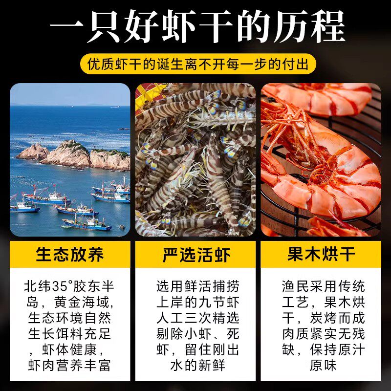 九节虾干即食特大烤虾干开袋即食大虾对虾斑虾海鲜干货孕妇零食A2