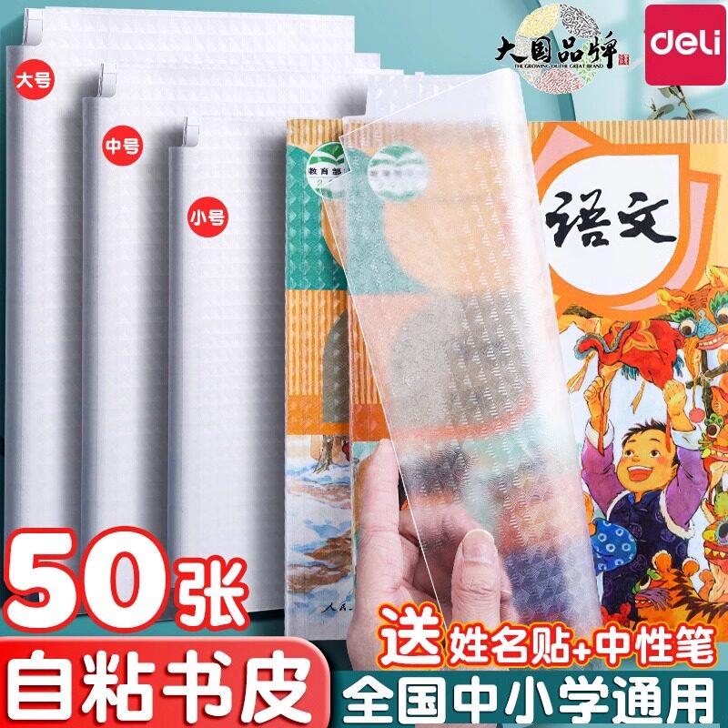 得力书皮贴纸自粘透明磨砂包书膜一年级下册包书皮书套小学生二三四年级课本A4书壳保护套16K包书纸2025新款