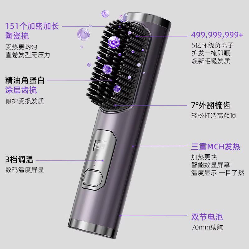 ovl直发梳无线便携夹板负离子不伤发梳子蓬松卷发棒直卷两用神器