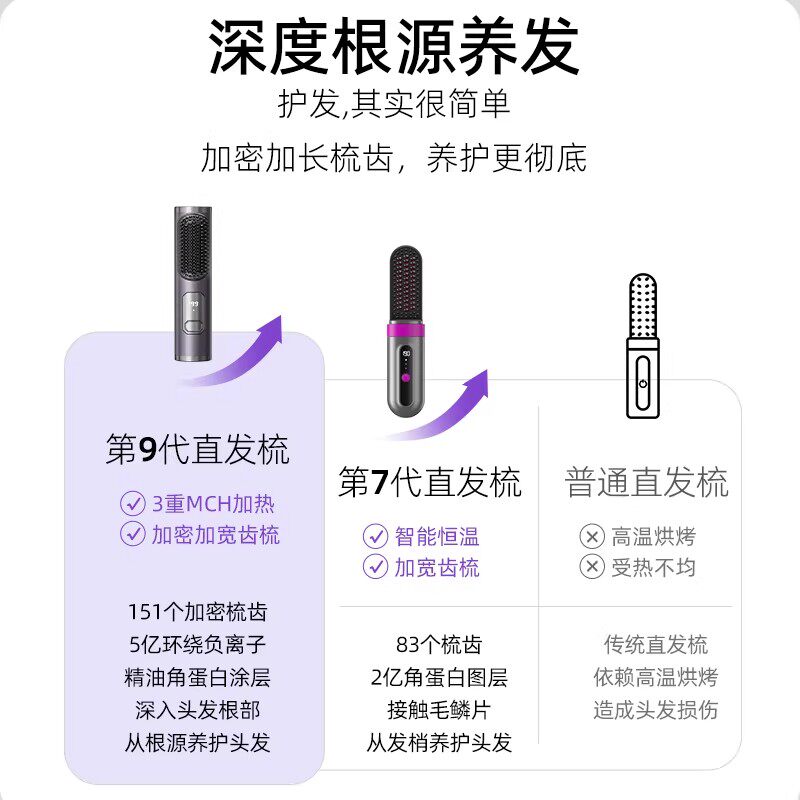 无线直发梳负离子不伤发蓬松高颅顶神器直卷两用夹板卷发棒电梳子