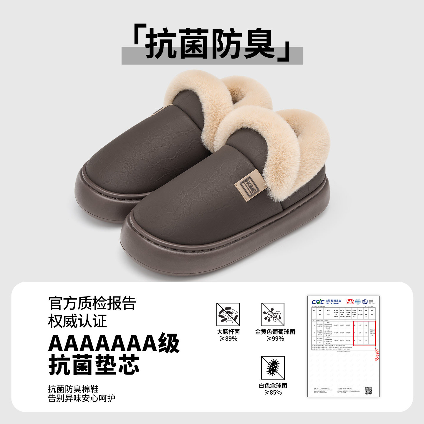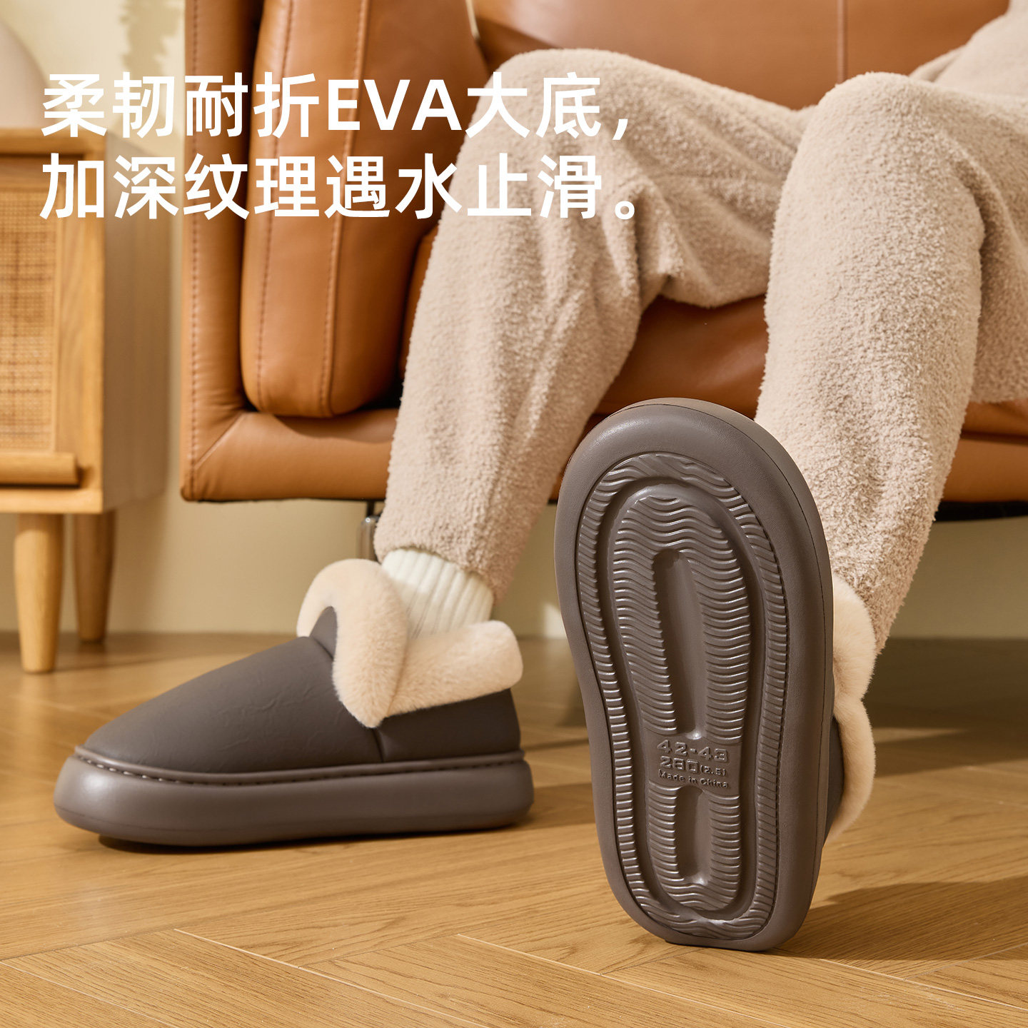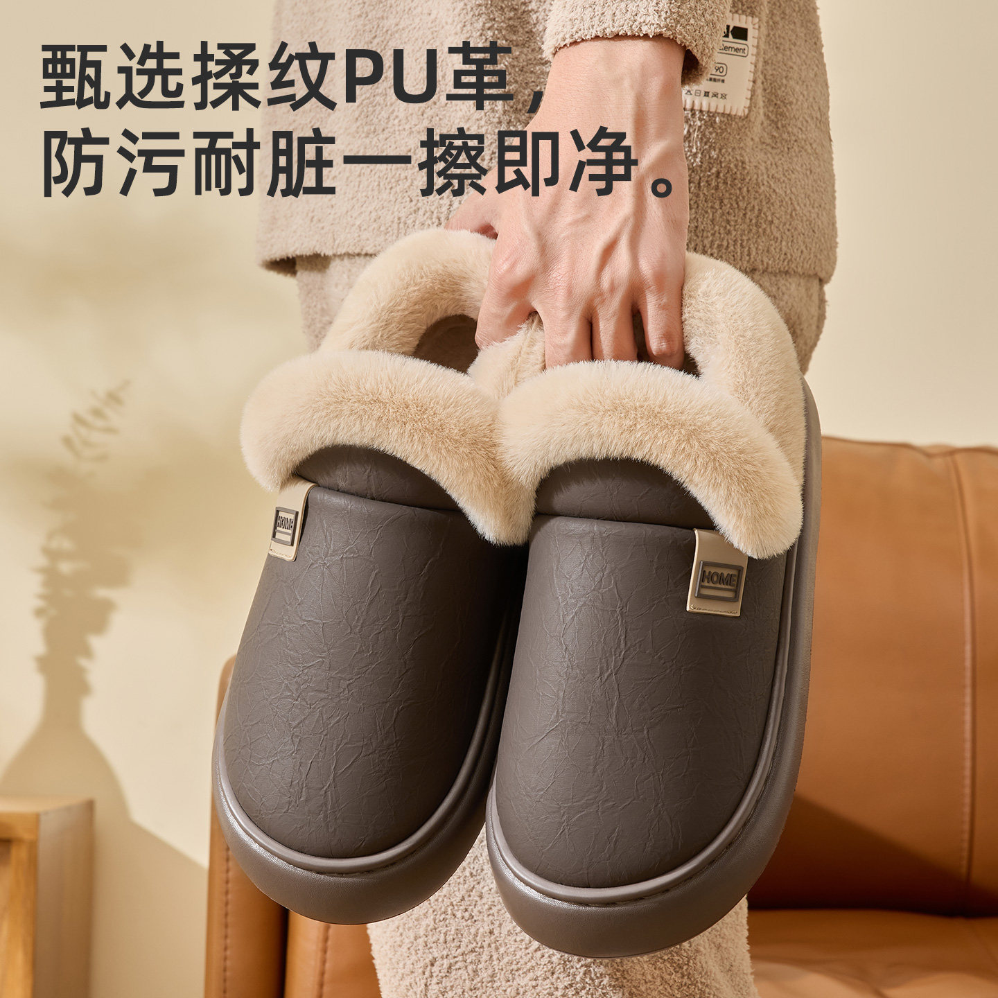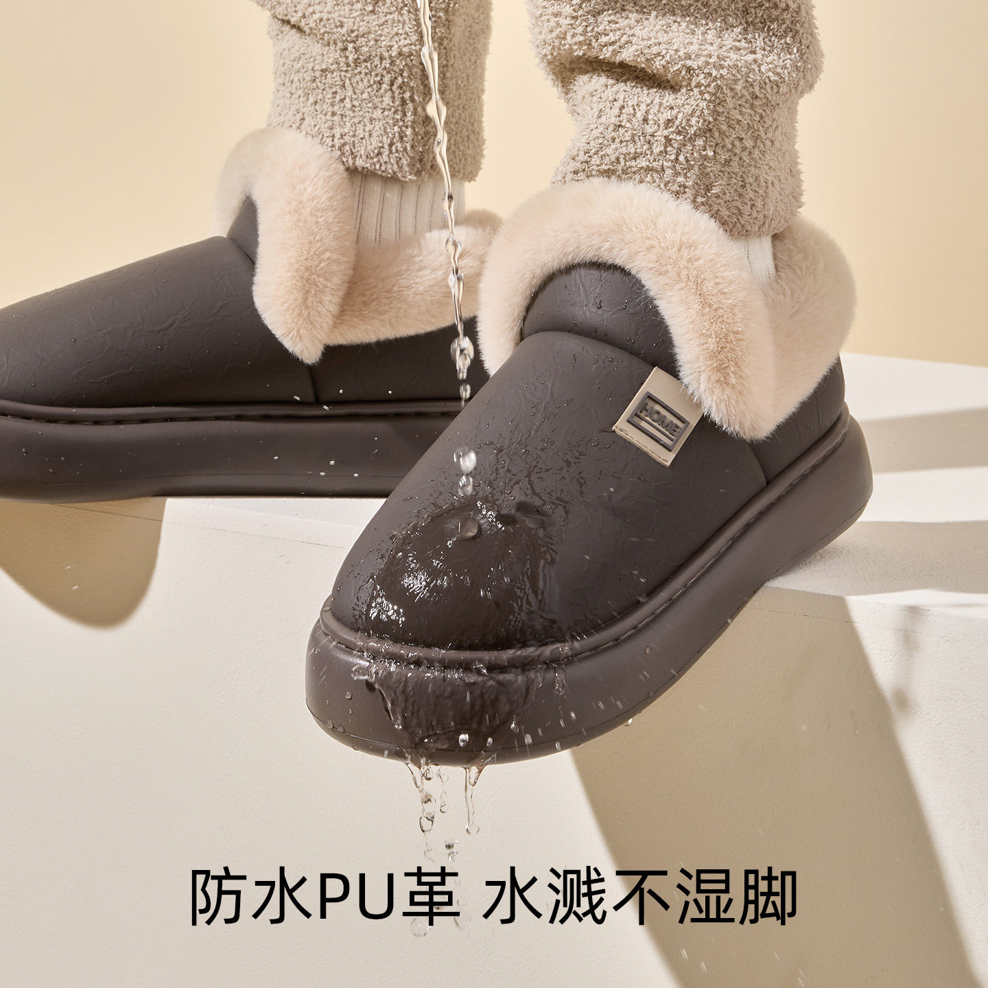 朴西棉拖鞋女士秋冬季厚底简约保暖室内居家用软底防滑情侣棉拖男