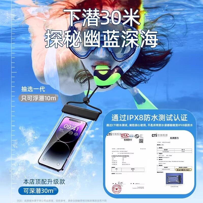 手机防水袋可触屏游泳潜水挂脖密封套户外漂流带气囊旅游专用装备