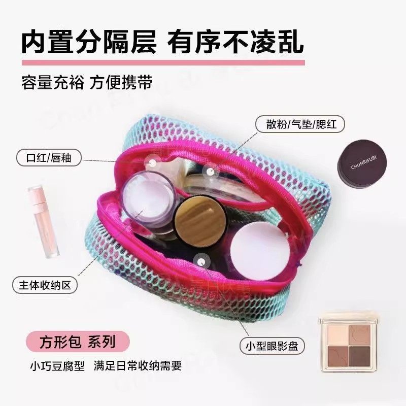 多巴胺豆腐包迷你网纱便携旅行洗漱化妆品收纳包补妆包网格杂物包