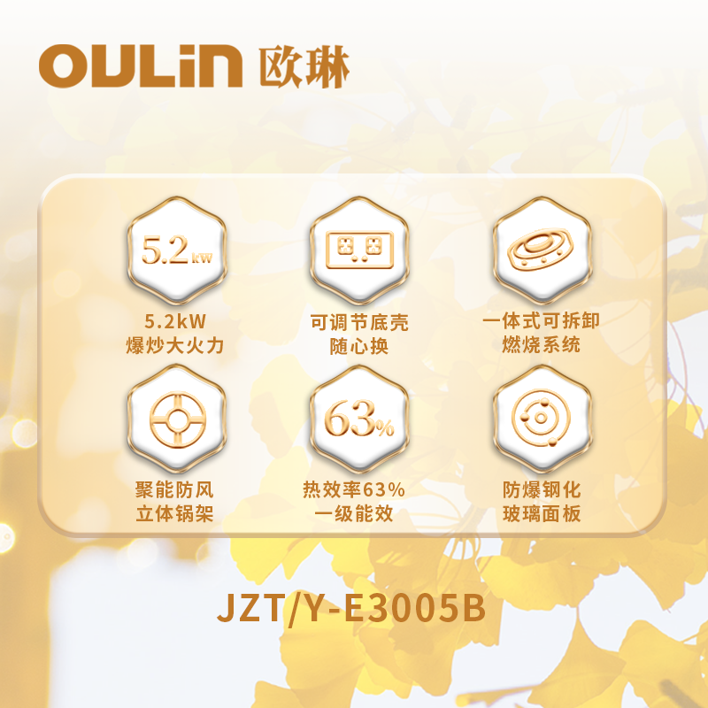 欧琳5.2KW大火力燃气灶聚能盘台嵌两用灶具底盘可调节免扩E3005B