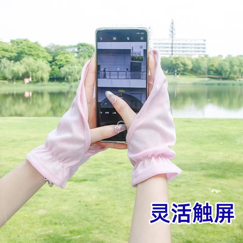 防晒手套女士夏季短款开车宽松防紫外线遮阳户外骑行露指薄款透气
