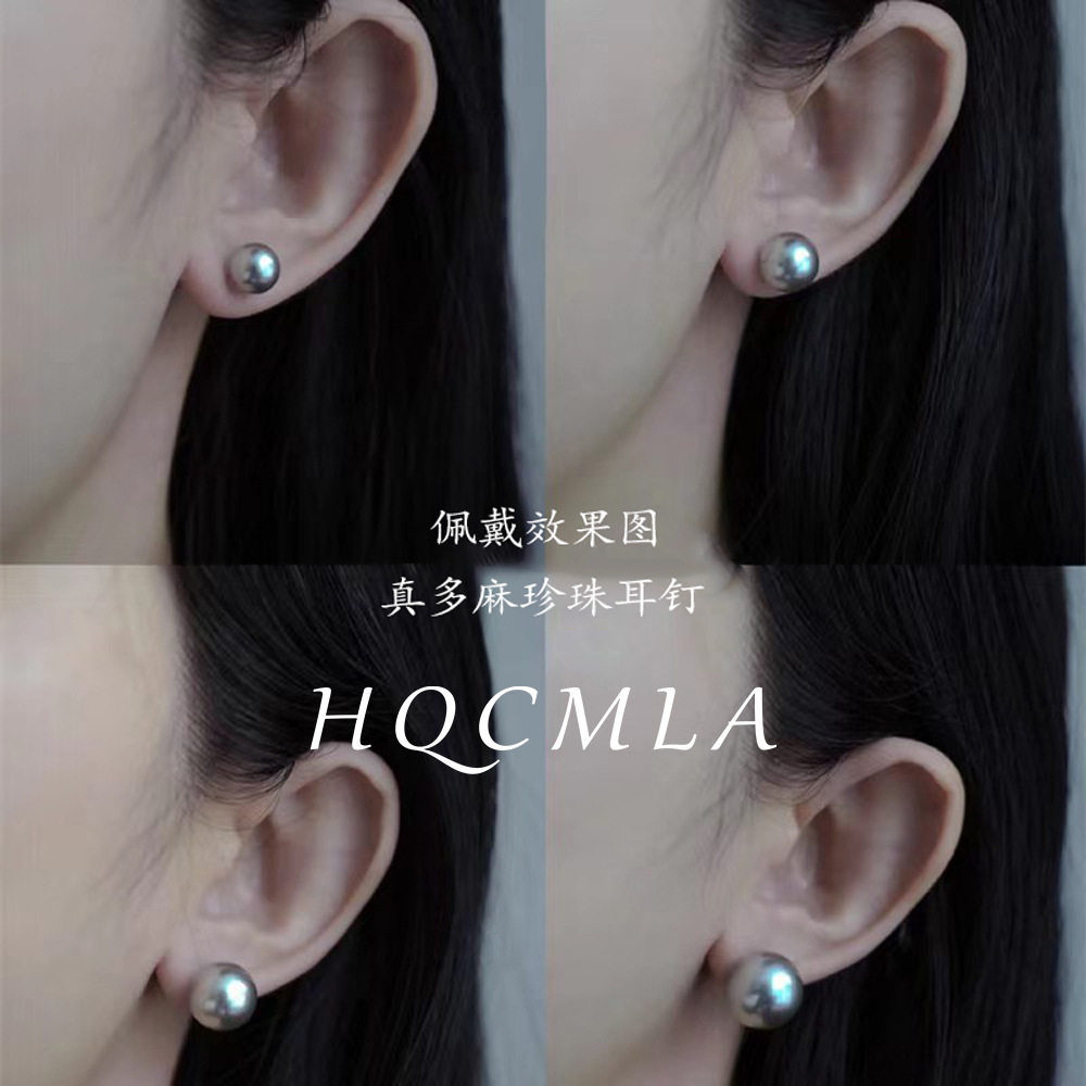 999纯银耳钉女施家珍珠馒头珠耳环扁圆高级气质法式复古轻奢耳饰