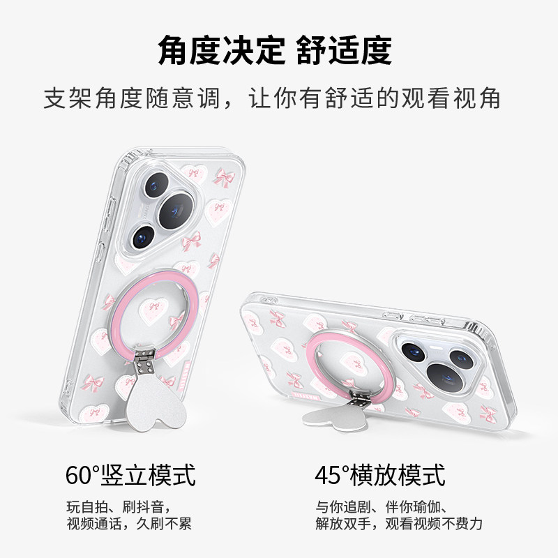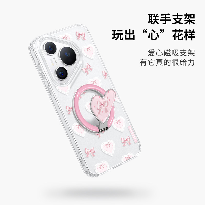 MASFEIL × 蕾丝爱心适用华为Pura70pro手机壳可爱pura70支点新款Ro9带支架全包套ins风时尚防摔p70高级感女+