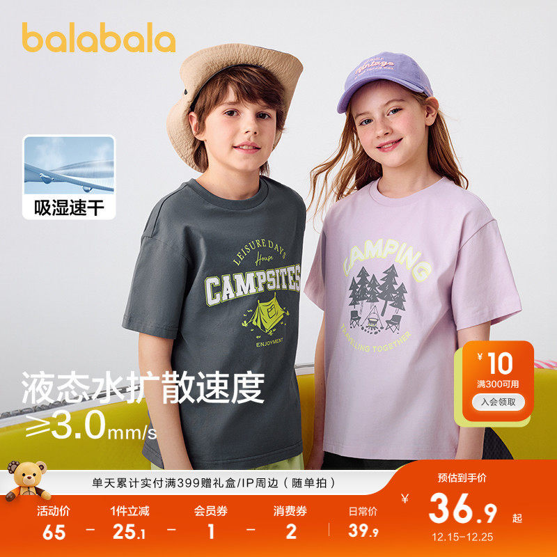 巴拉巴拉童装男童短袖t恤女童上衣宝宝2025新款夏装儿童速干衣服