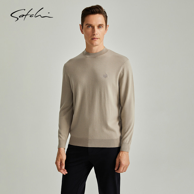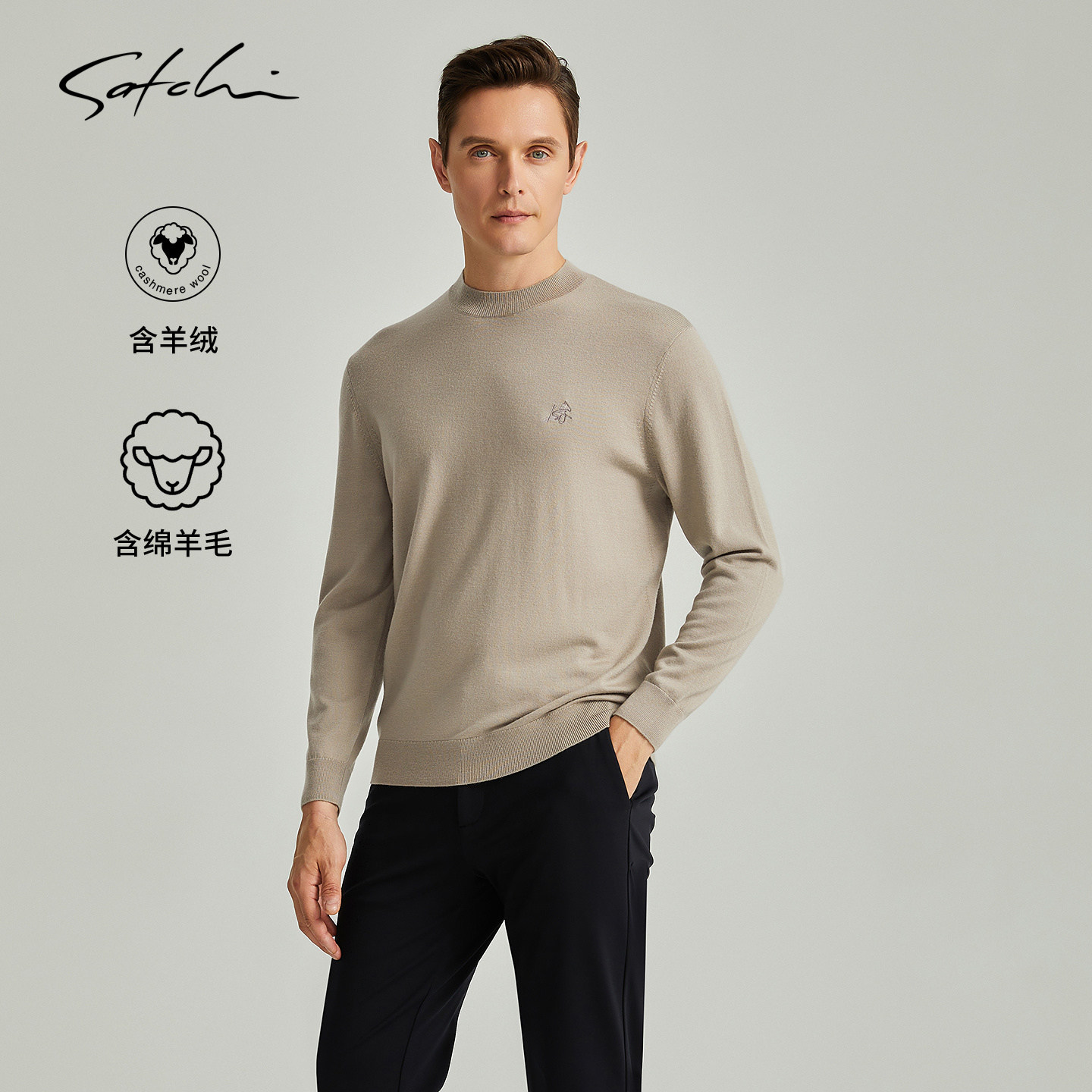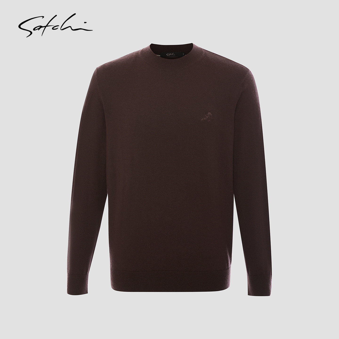 [山羊绒]SATCHI沙驰男装男士针织羊毛衫冬季新款商务圆领红色毛衣