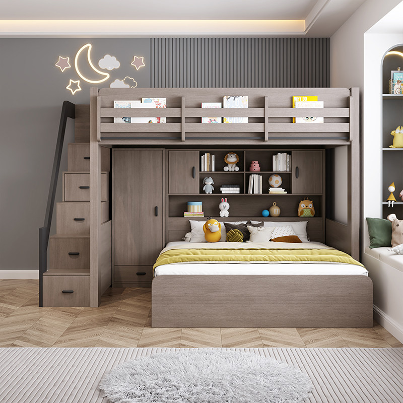 上下床双层床衣柜子母床全实木多功能高低床双人上下铺家用儿童床