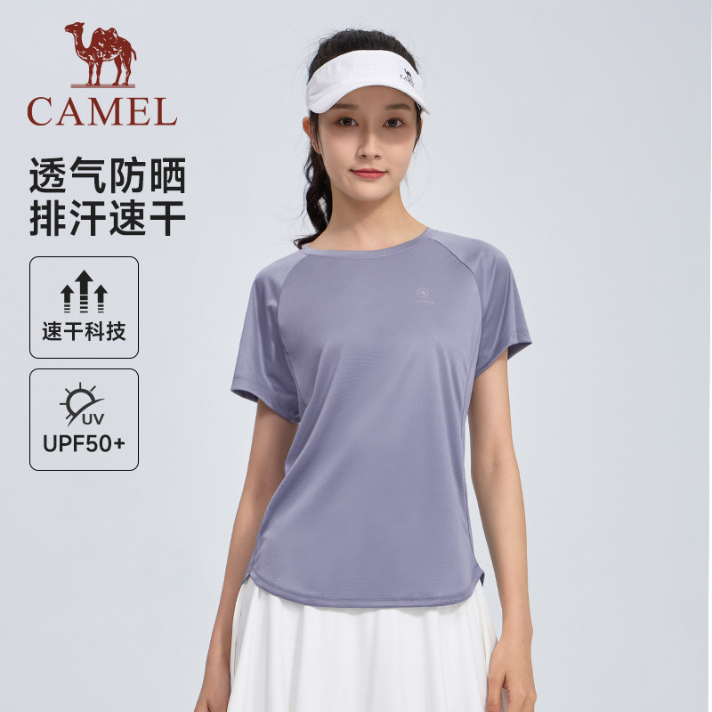 骆驼瑜伽服女2025夏季防晒短袖速干T恤跑步健身透气薄款休闲上衣