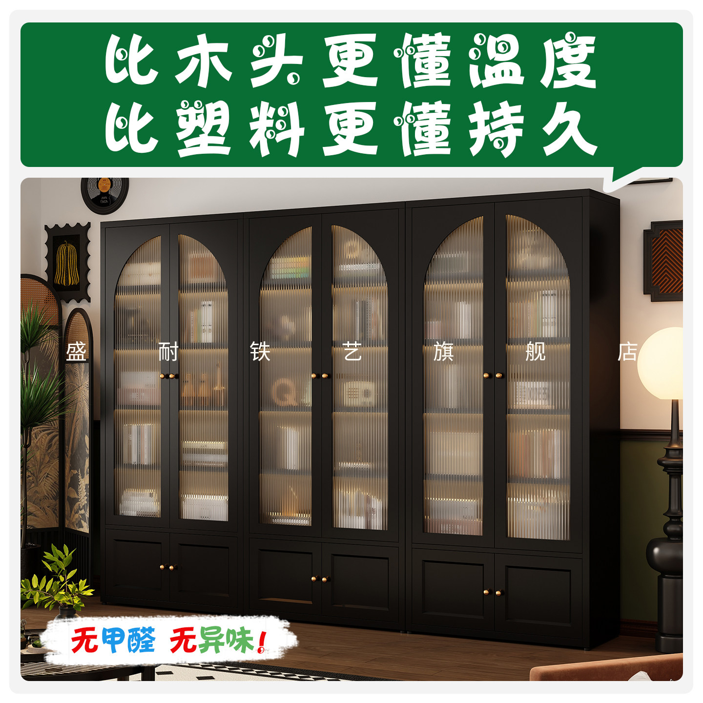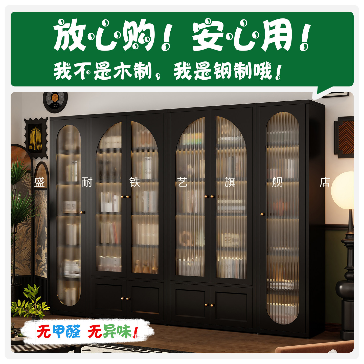 钢制书柜儿童书架落地家用客厅亚克力透明防尘门展示柜储物置物架