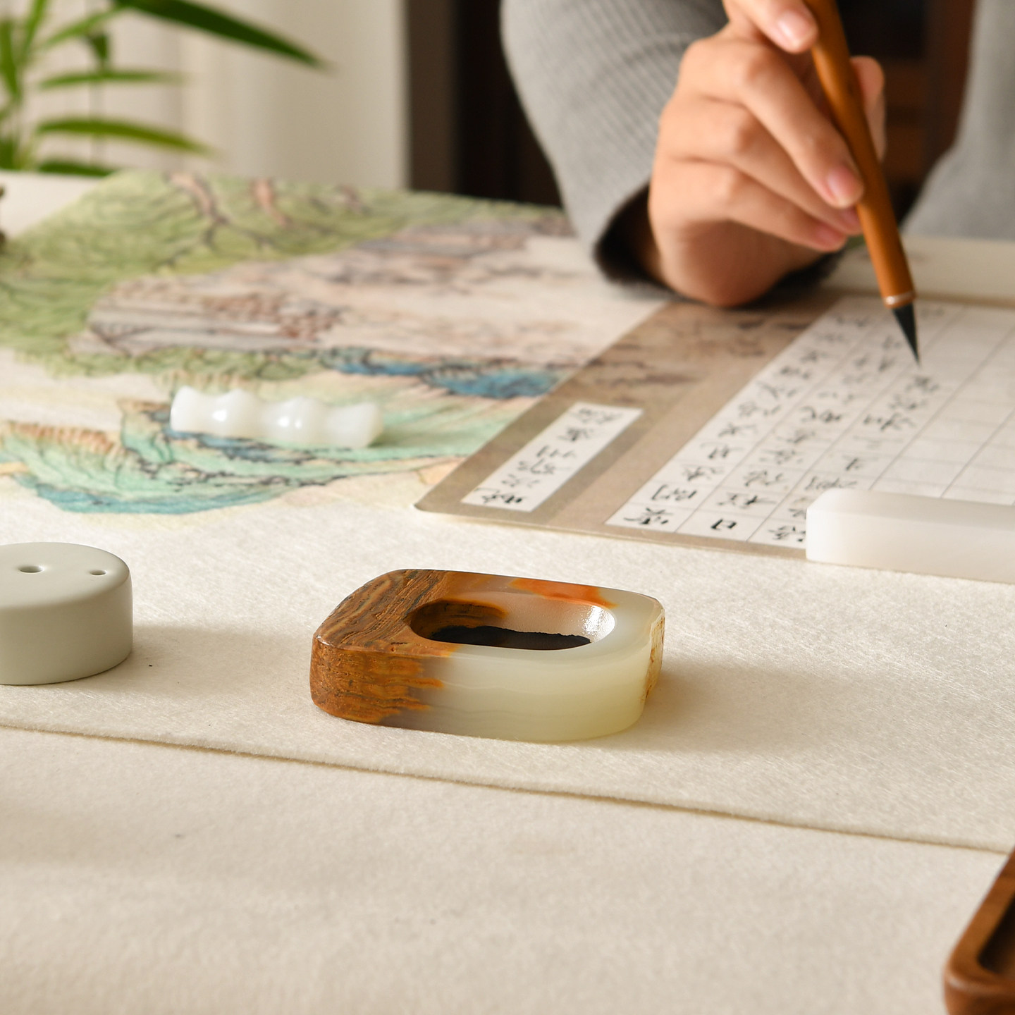 书法砚台玉石砚池毛笔墨汁随形砚台天然原石手工打磨文房四宝墨池墨盘墨碗书法墨碟小砚台文创孤品砚