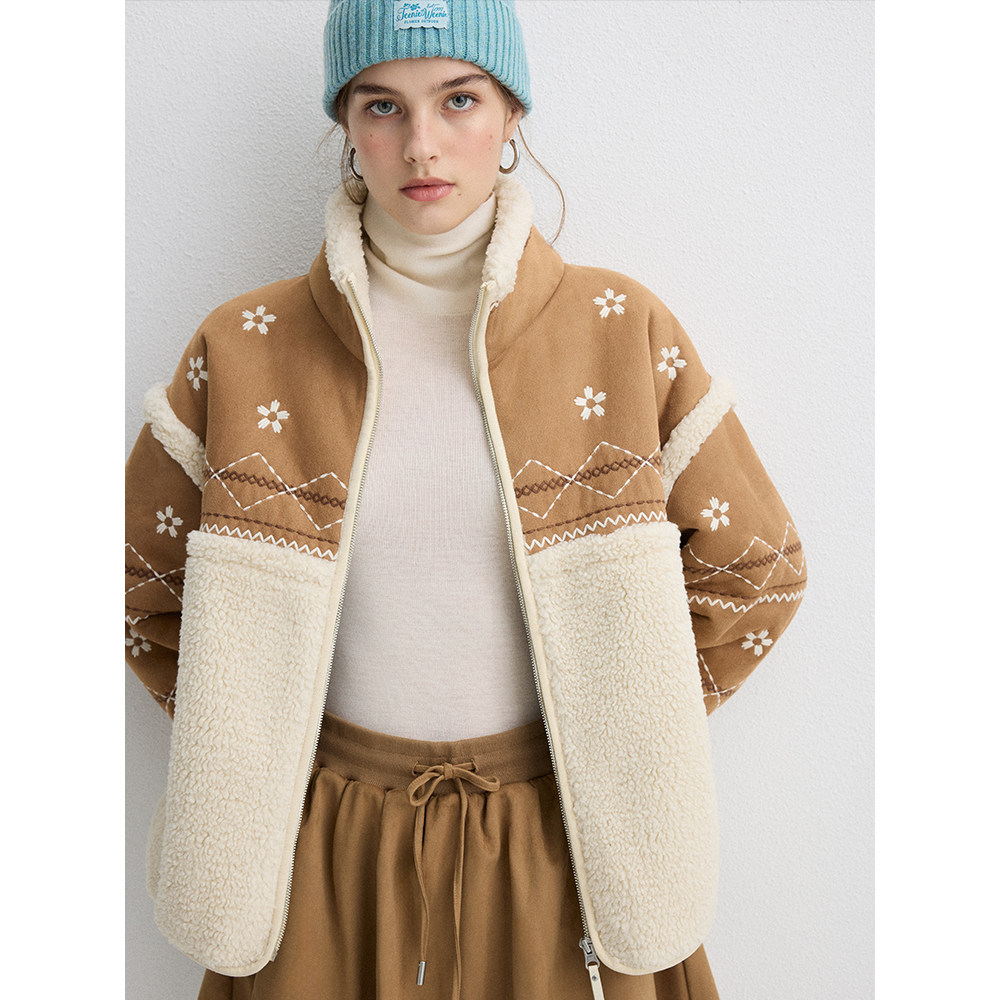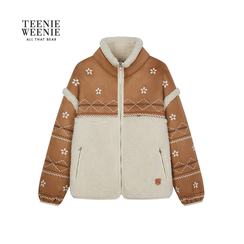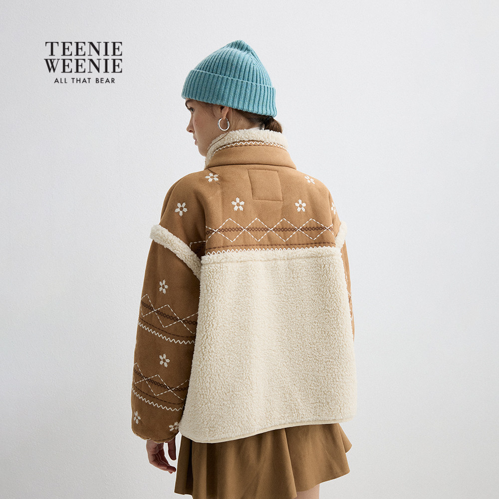 TeenieWeenie小熊女装2025年冬季新款仿麂皮绒与仿羊羔毛复合外套