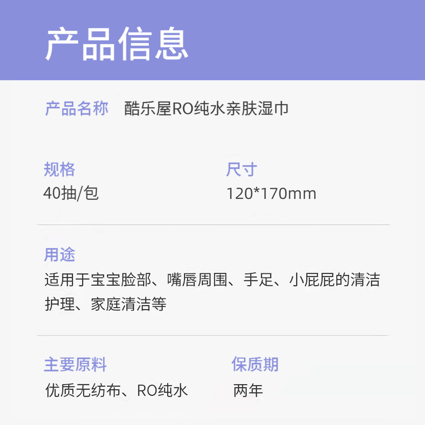 酷乐屋纯水湿巾中包装40抽家用湿纸巾学生外出专用家庭随身便携装