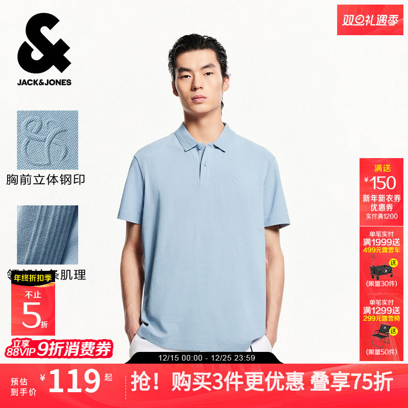 【凉感】杰克琼斯polo衫男装士秋季新款纯色高级短袖T恤冰丝翻领