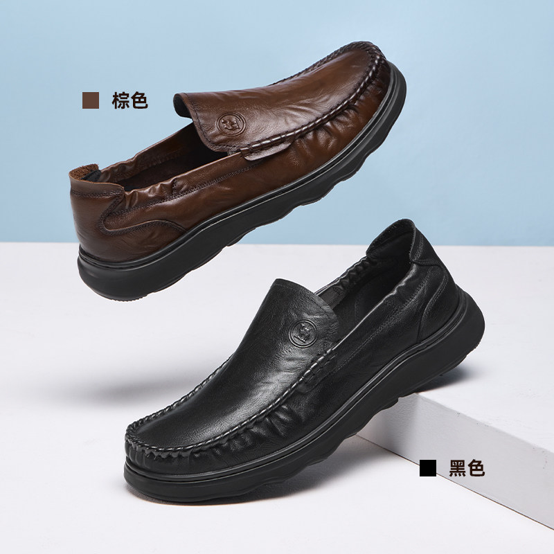 奥康官方男鞋春秋季真皮商务休闲皮鞋时尚套脚平底脚蹬舒适爸爸鞋