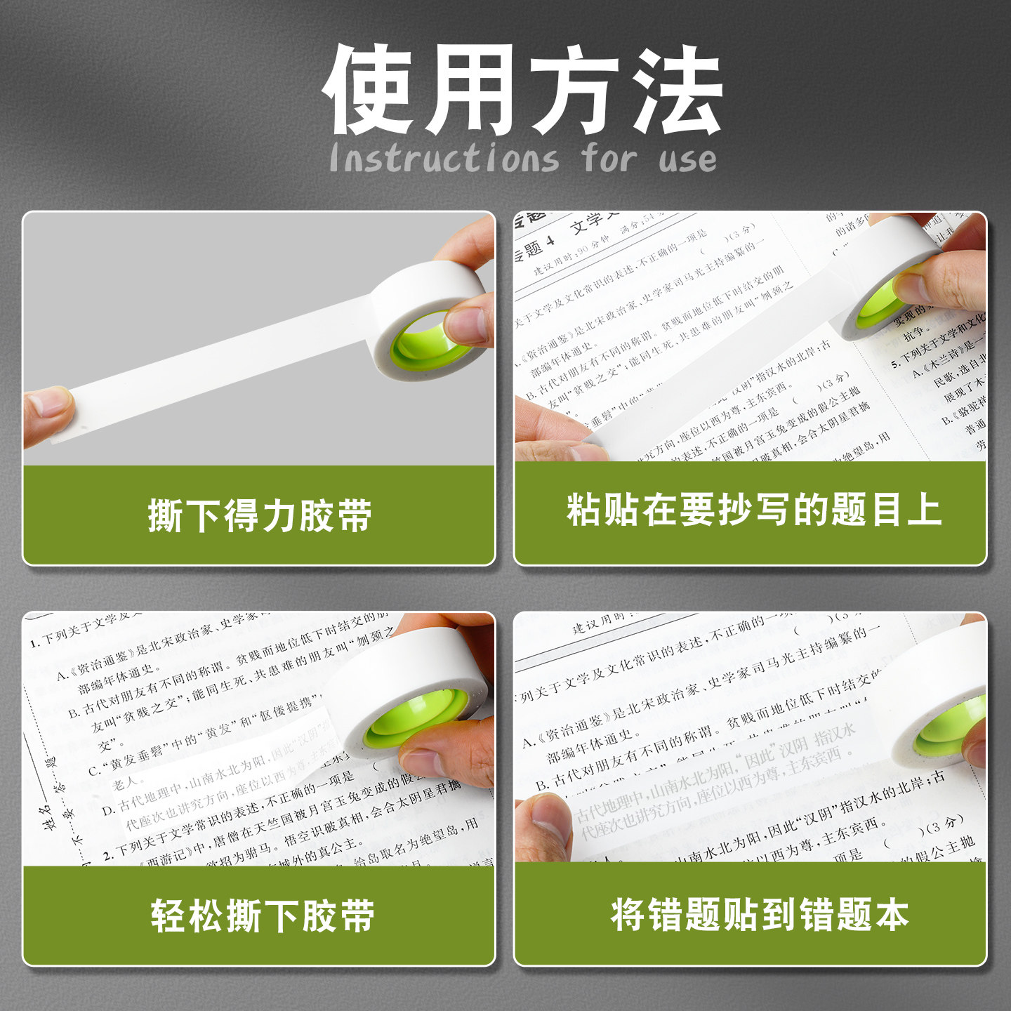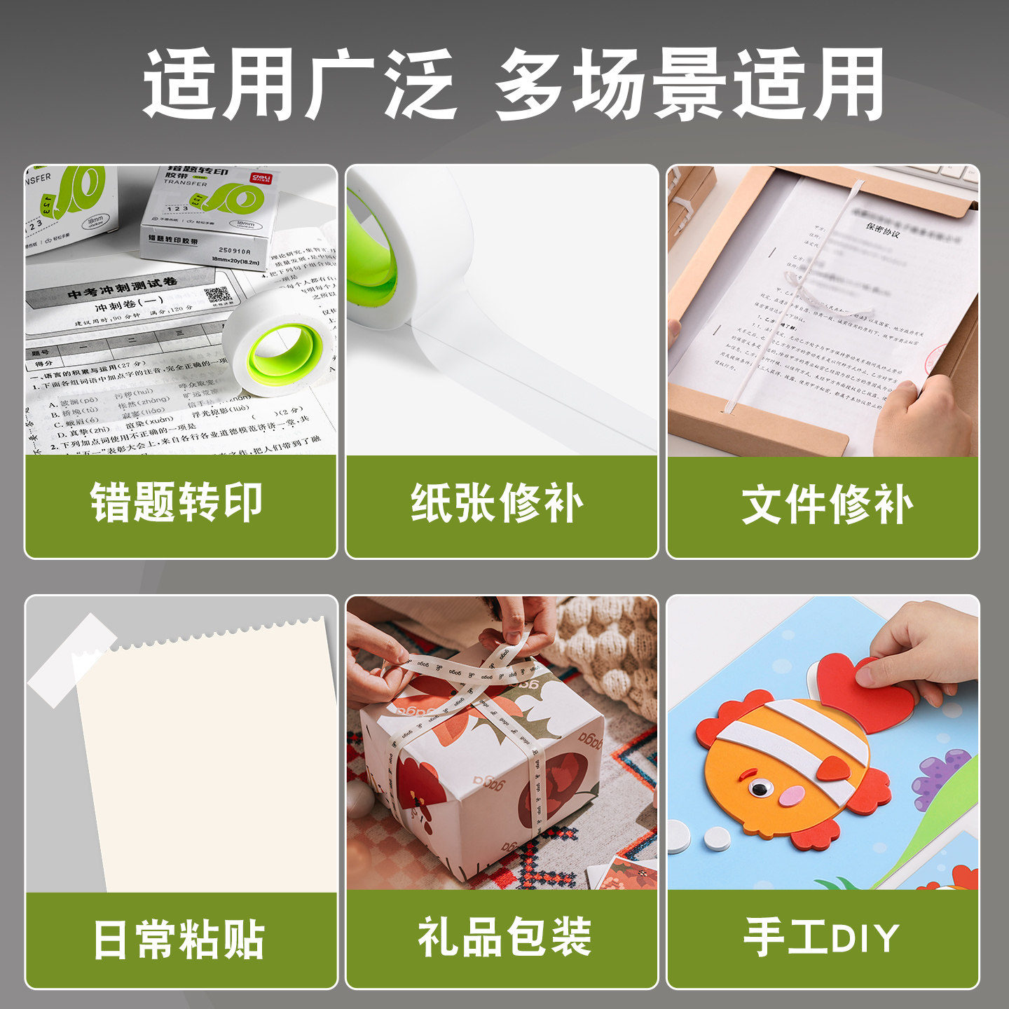 得力半透明错题胶带转印免抄题神器学生用隐形改正贴可复印无痕改错字磨砂胶布考试罚抄整理粘贴必备手账文具
