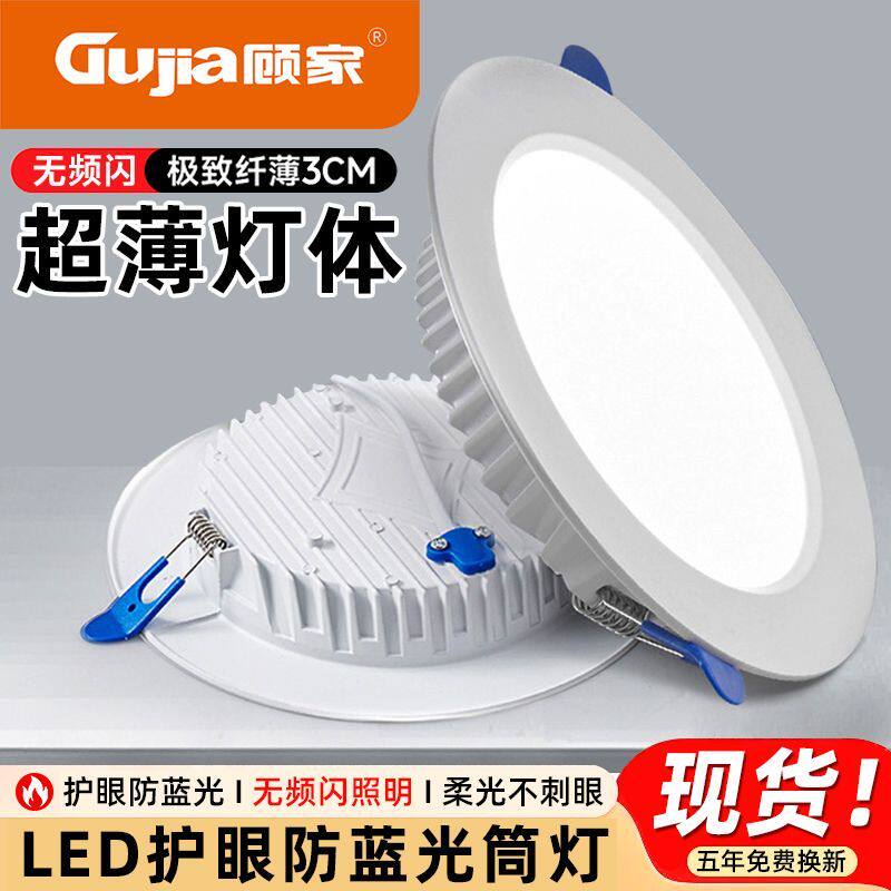 顾家led筒灯店铺商用4寸12w嵌入式6寸18瓦天花吊顶孔洞桶灯大开孔