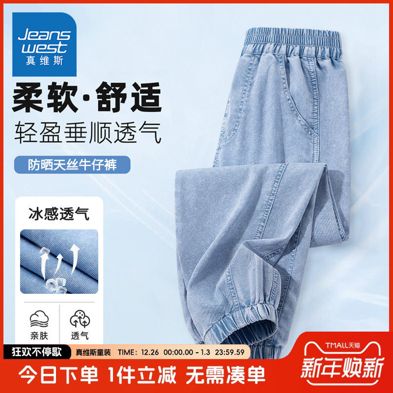 真维斯童装男童天丝牛仔裤夏薄款2025新款大童夏季儿童防蚊裤子男
