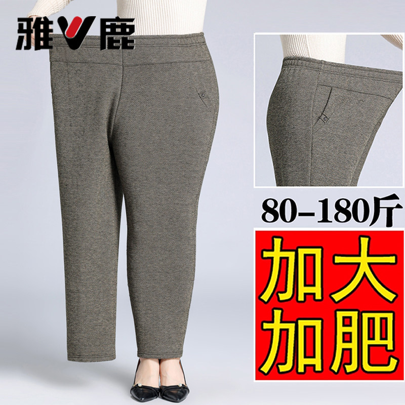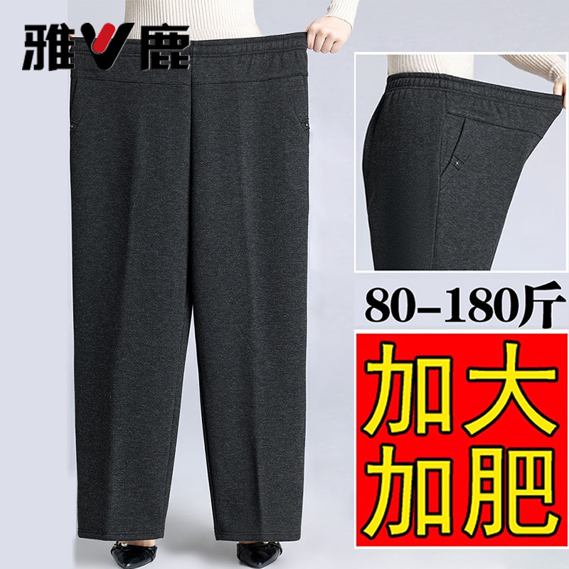 妈妈裤子春秋款松紧高腰弹力中老年女裤宽松大码直筒奶奶加绒长裤
