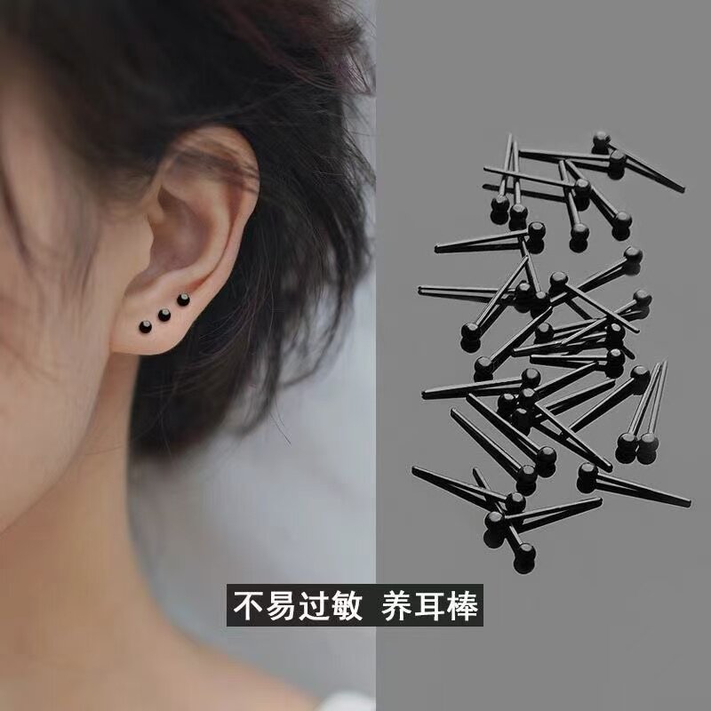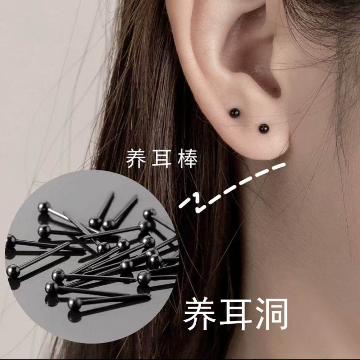 养耳洞耳钉套装透明隐形耳棒黑色耳棍透明耳针简约防过敏防堵耳饰