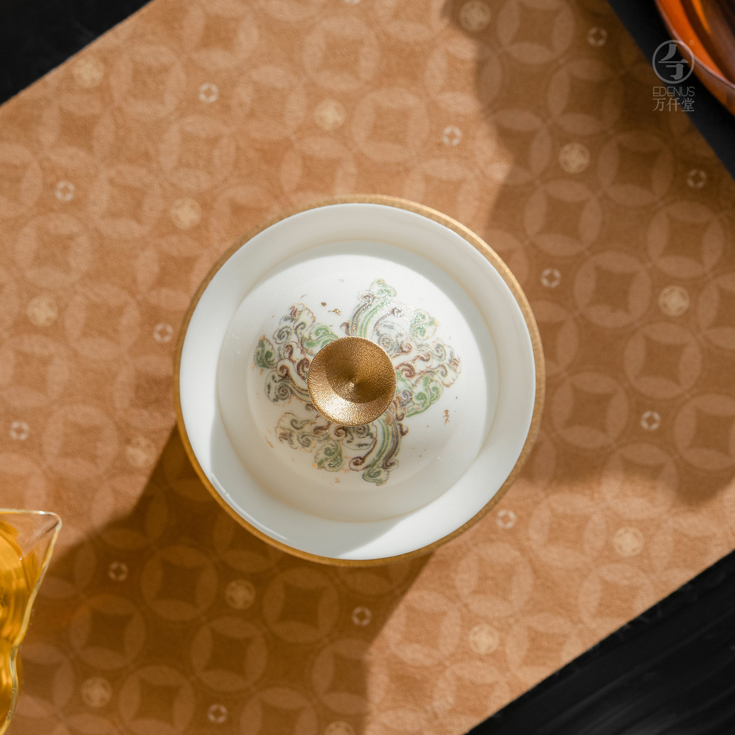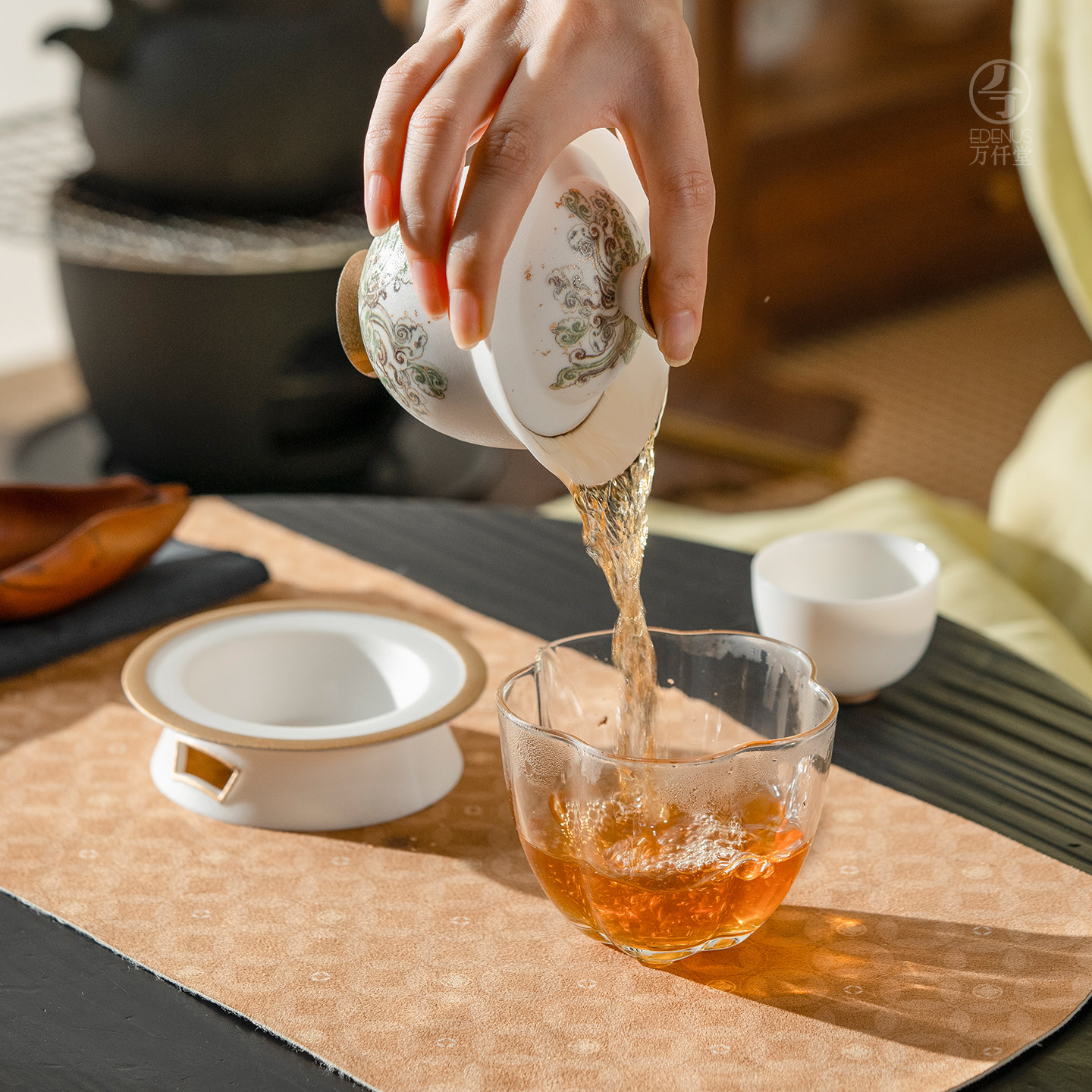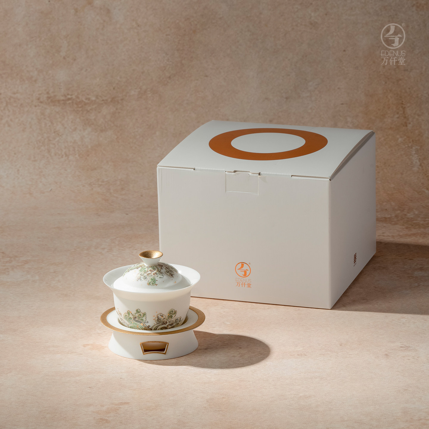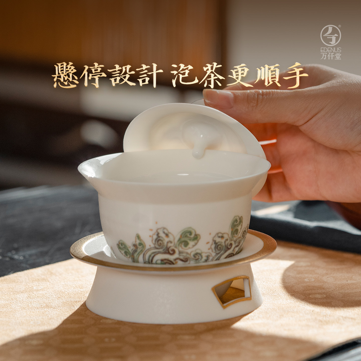 万仟堂三才盖碗大号泡茶壶家用陶瓷茶具套装茶杯约130ml祥云瑞器
